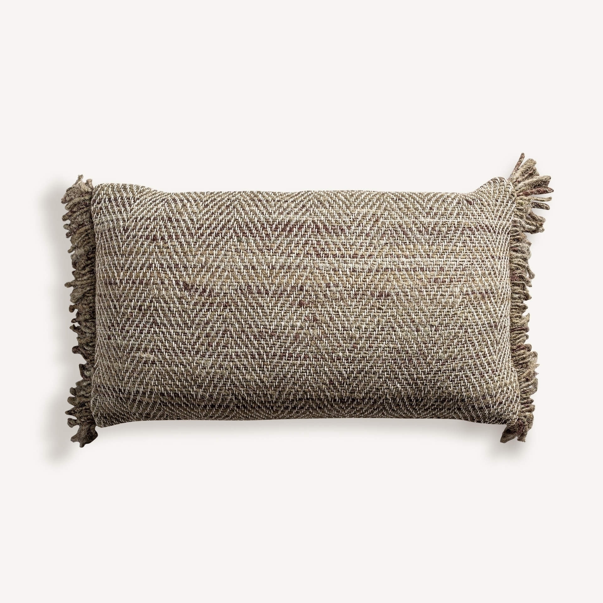 Подушка Baruch от VICAL в меланжево-коричневых тонах с наполнителем из хлопка, вискозы и синтепона отражает стиль бохо с натуральными фактурами и съемным чехлом для большей практичности. Ширина: 50 см, Глубина: 10 см, Высота: 30 см