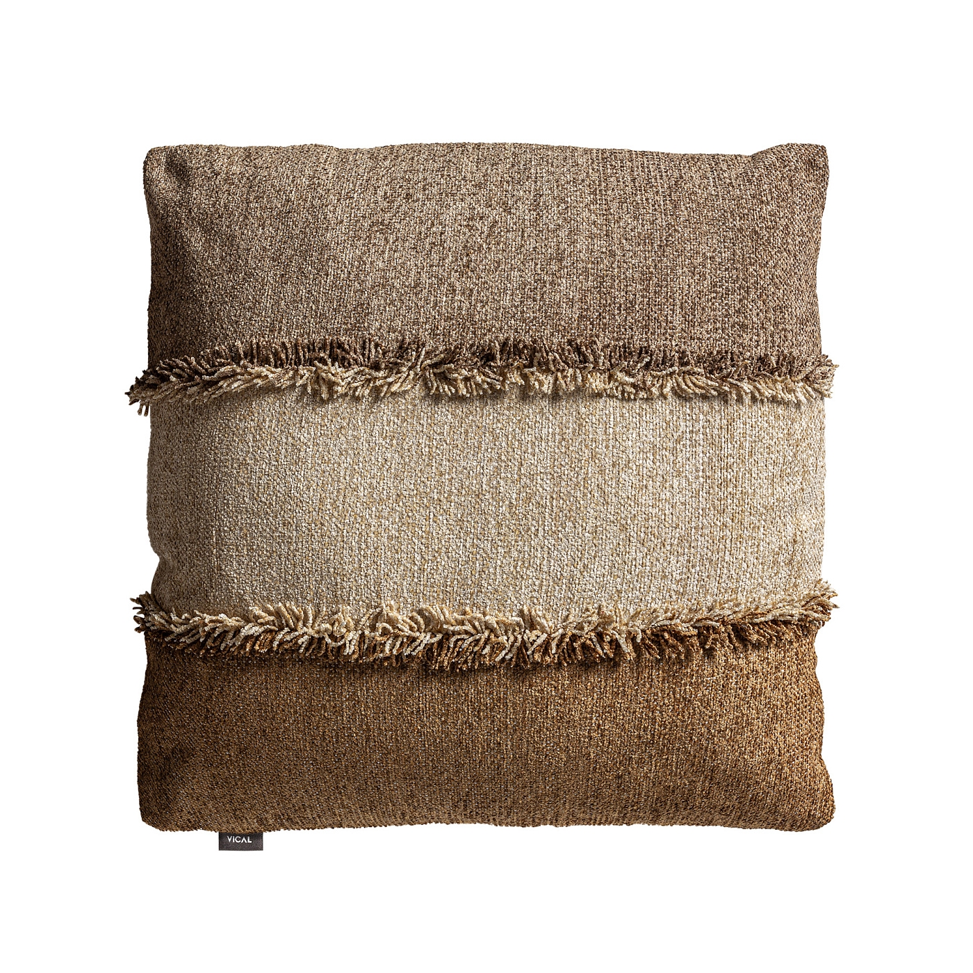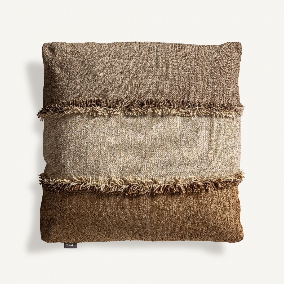 Подушка Essien в классическом стиле, выполнена из хлопка в коричневых тонах в сочетании с бежевым бархатом и синтетической ватой. Съемное изделие.