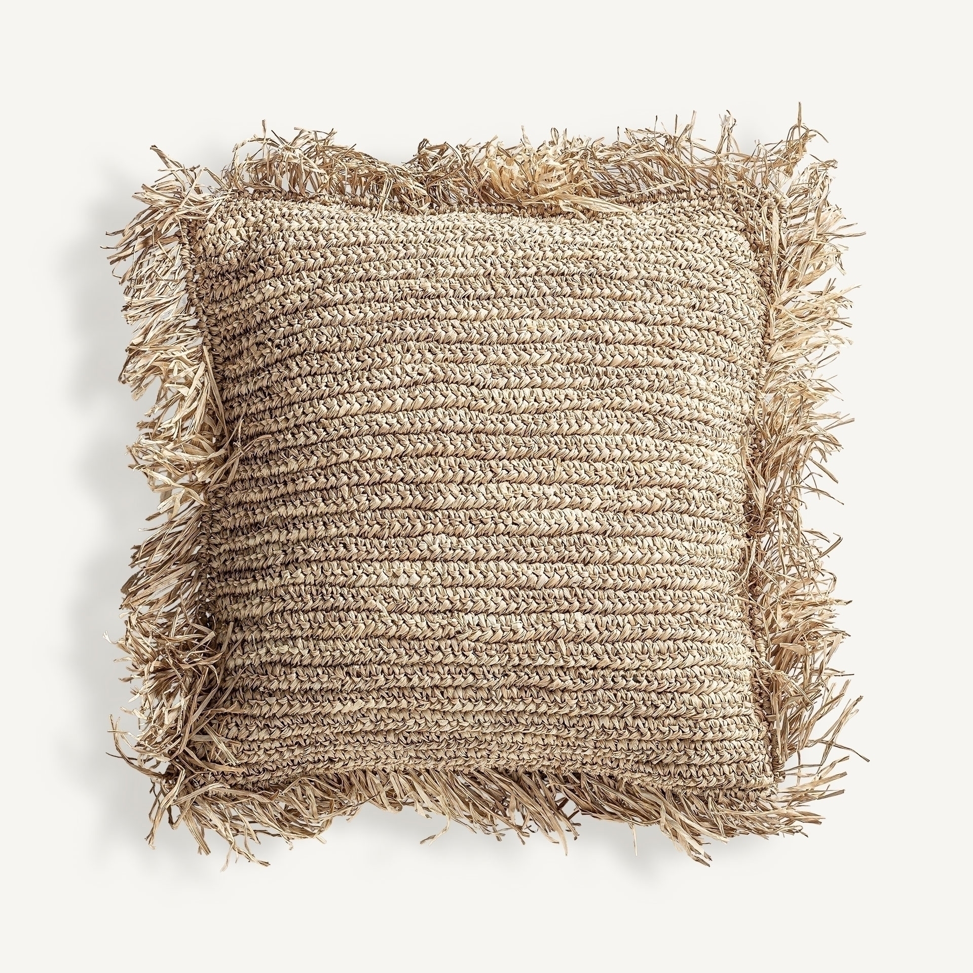 Подушка Igotz бежевого цвета в стиле бохо. Изготовлен из натурального волокна в сочетании с полиэстером.
