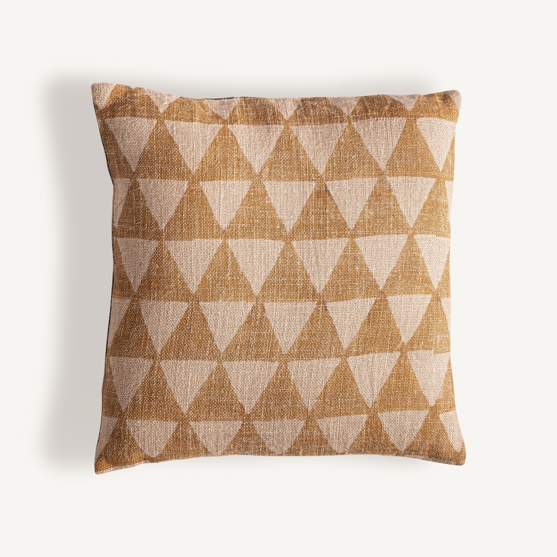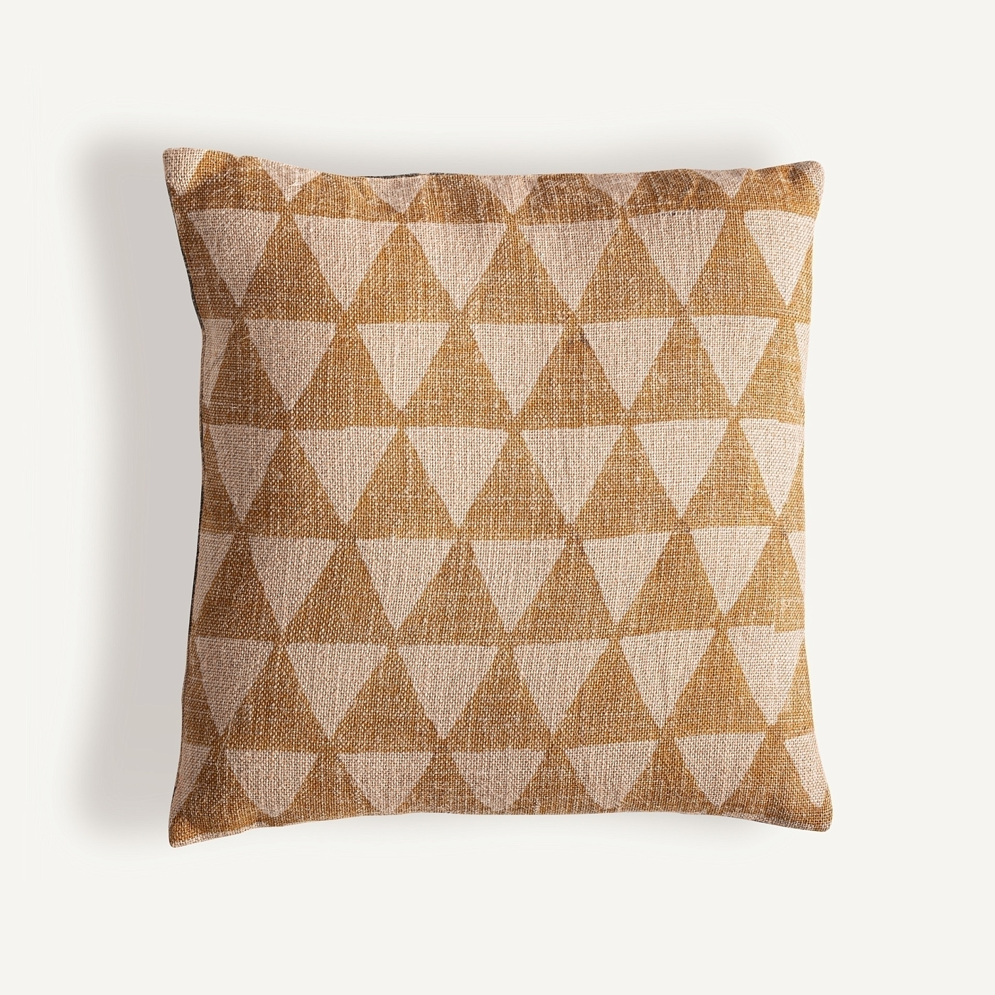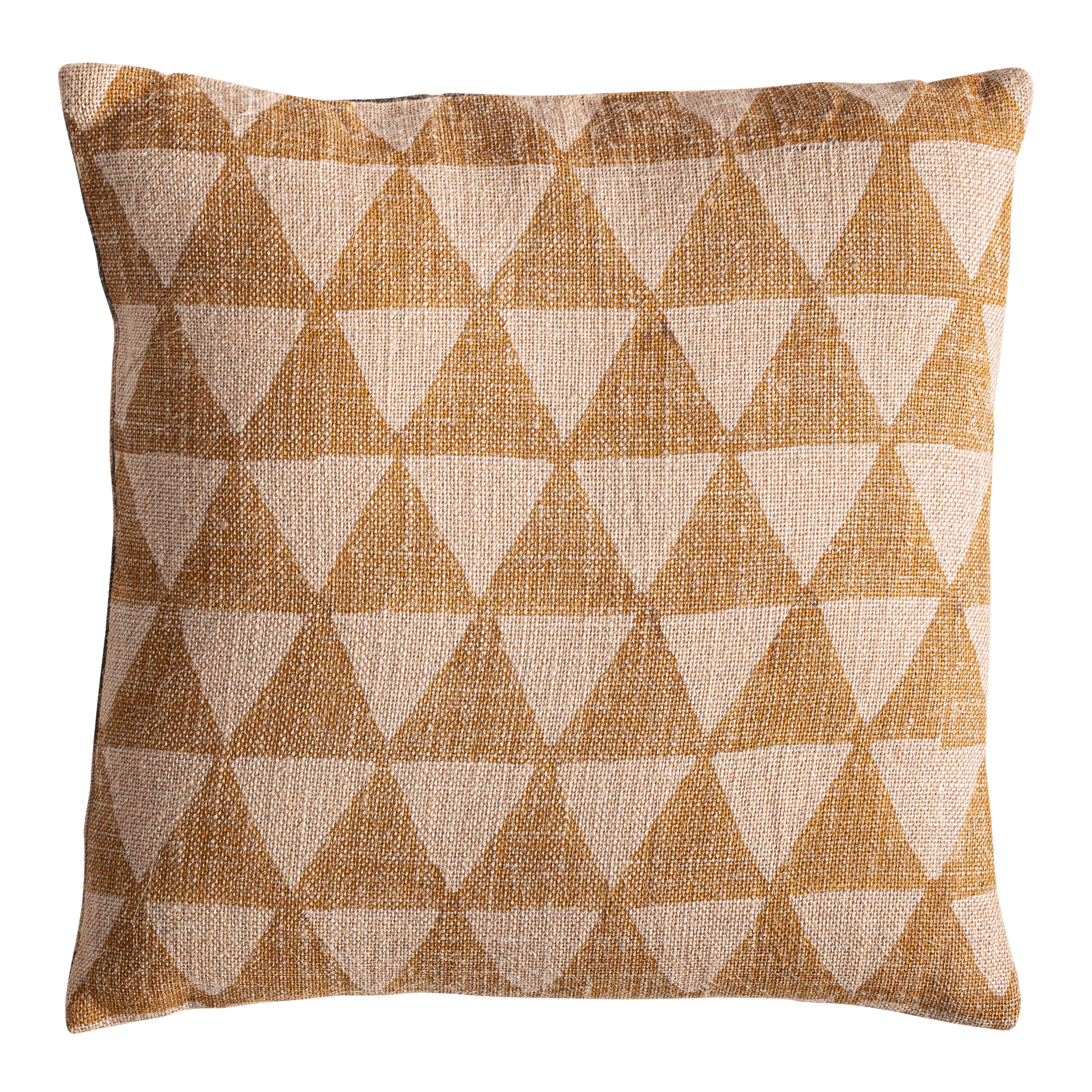 Классическая подушка Хонсу из бежевого джута в сочетании с натуральным волокном цвета охры. Чехол съёмный. Ширина: 45 см, Глубина: 20 см, Высота: 45 см