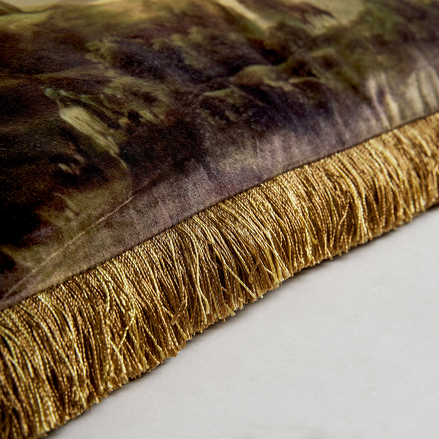 Подушка квадратная ANATOLE, цвет охры, классический стиль. Изготовлен из бархата. Ширина: 45 см, Глубина: 15 см, Высота: 45 см.