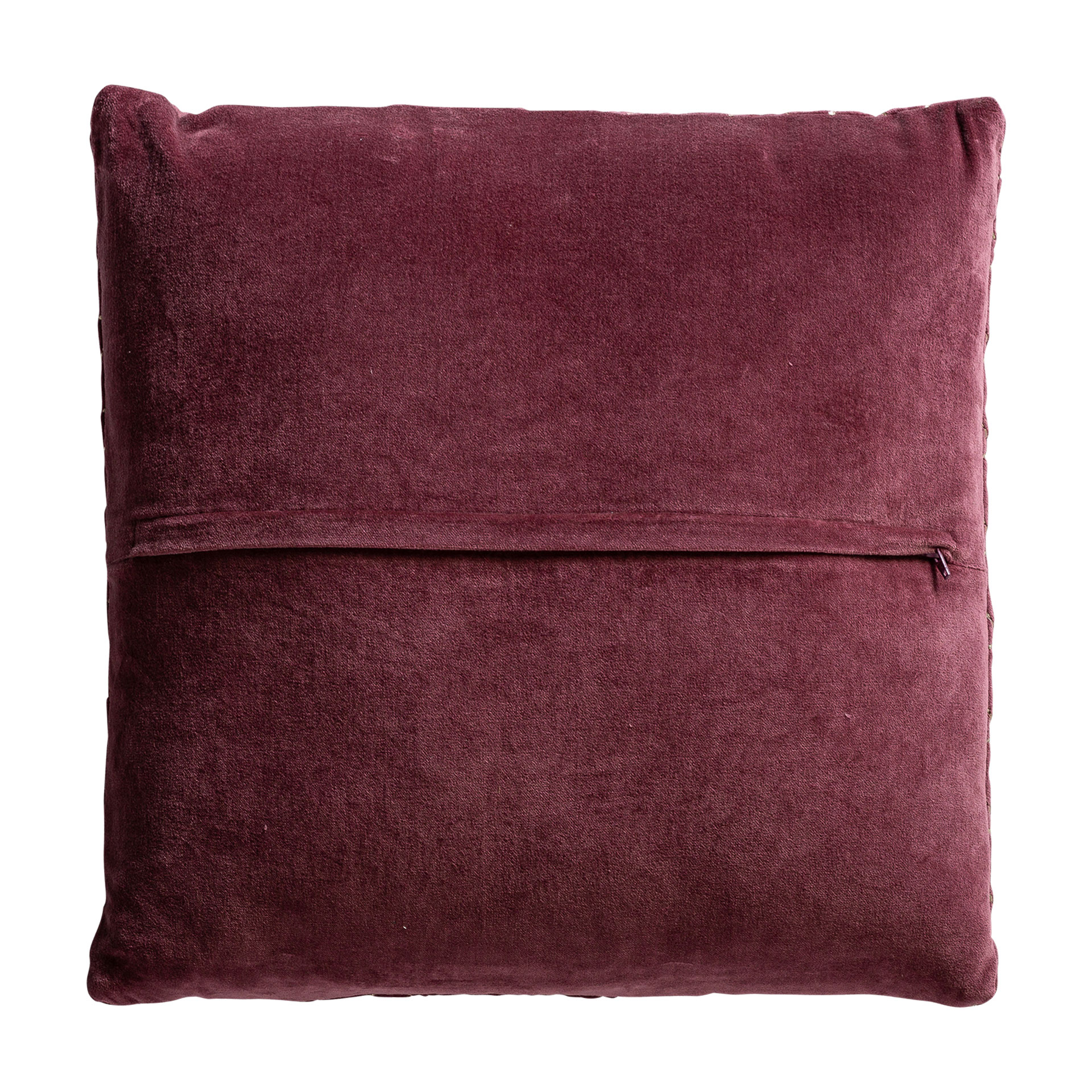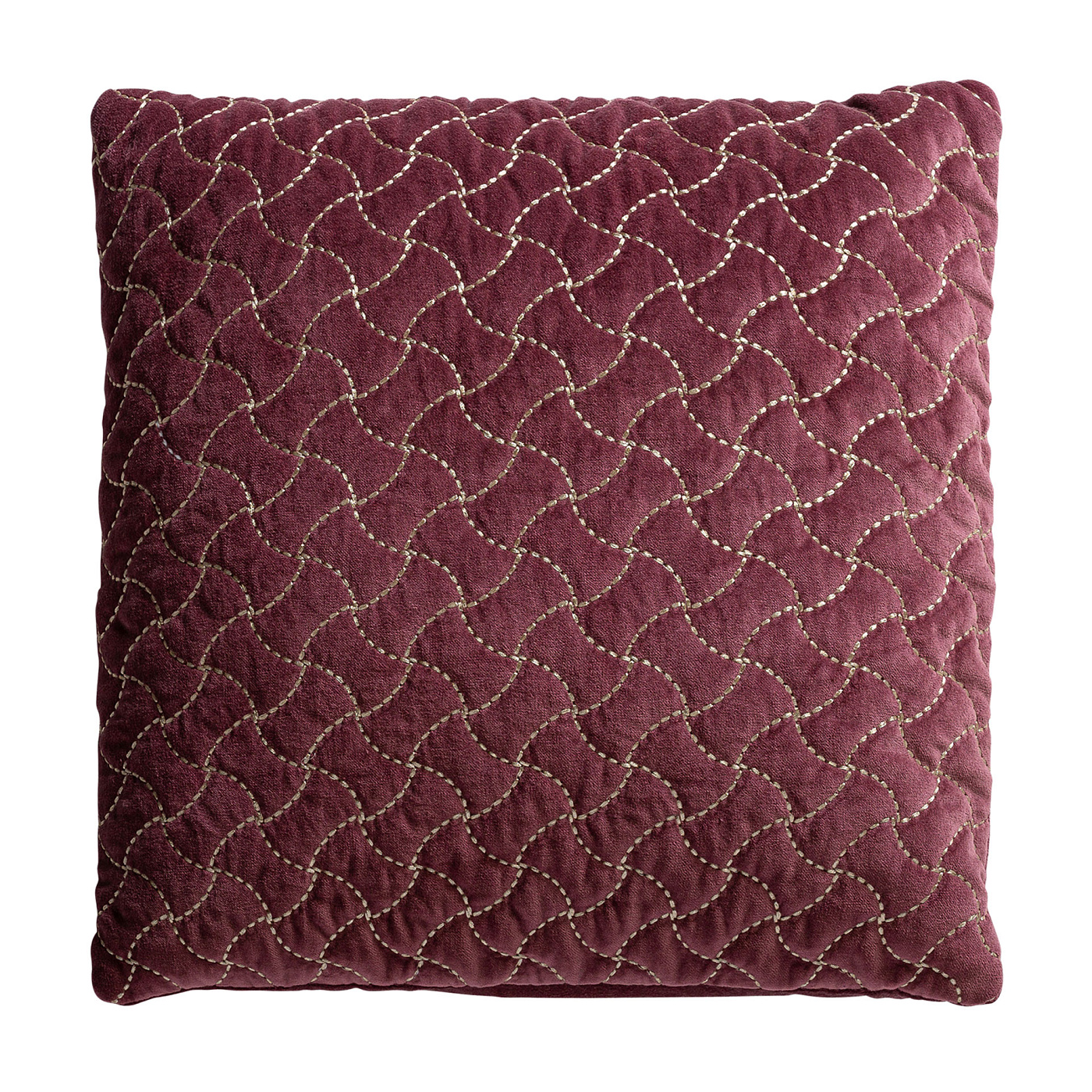 Подушка Lis, в вышитом бордовом цвете, в классическом стиле. Изготовлен из бархата в сочетании с хлопком и полиэстером. Съемный продукт.