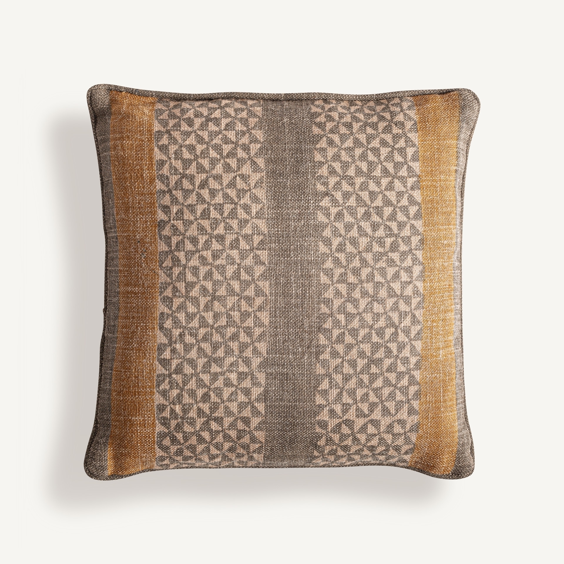 Подушка Narmer в классическом стиле, изготовлена из бежевого джута в сочетании с натуральным волокном цвета охры. Ширина: 45 см, Глубина: 20 см, Высота: 45 см
