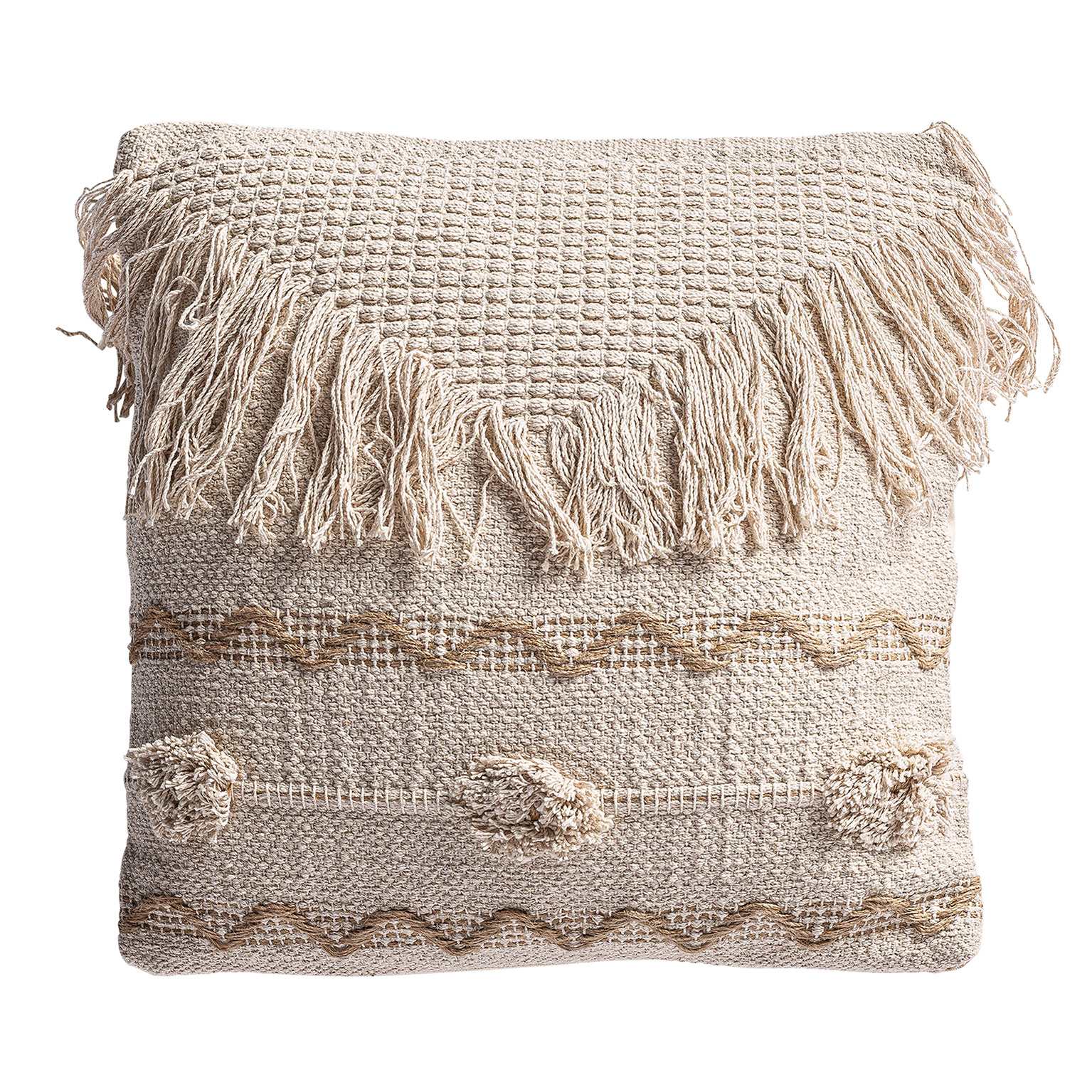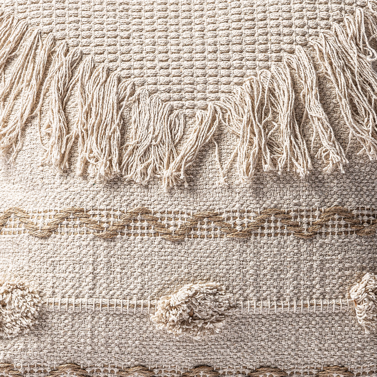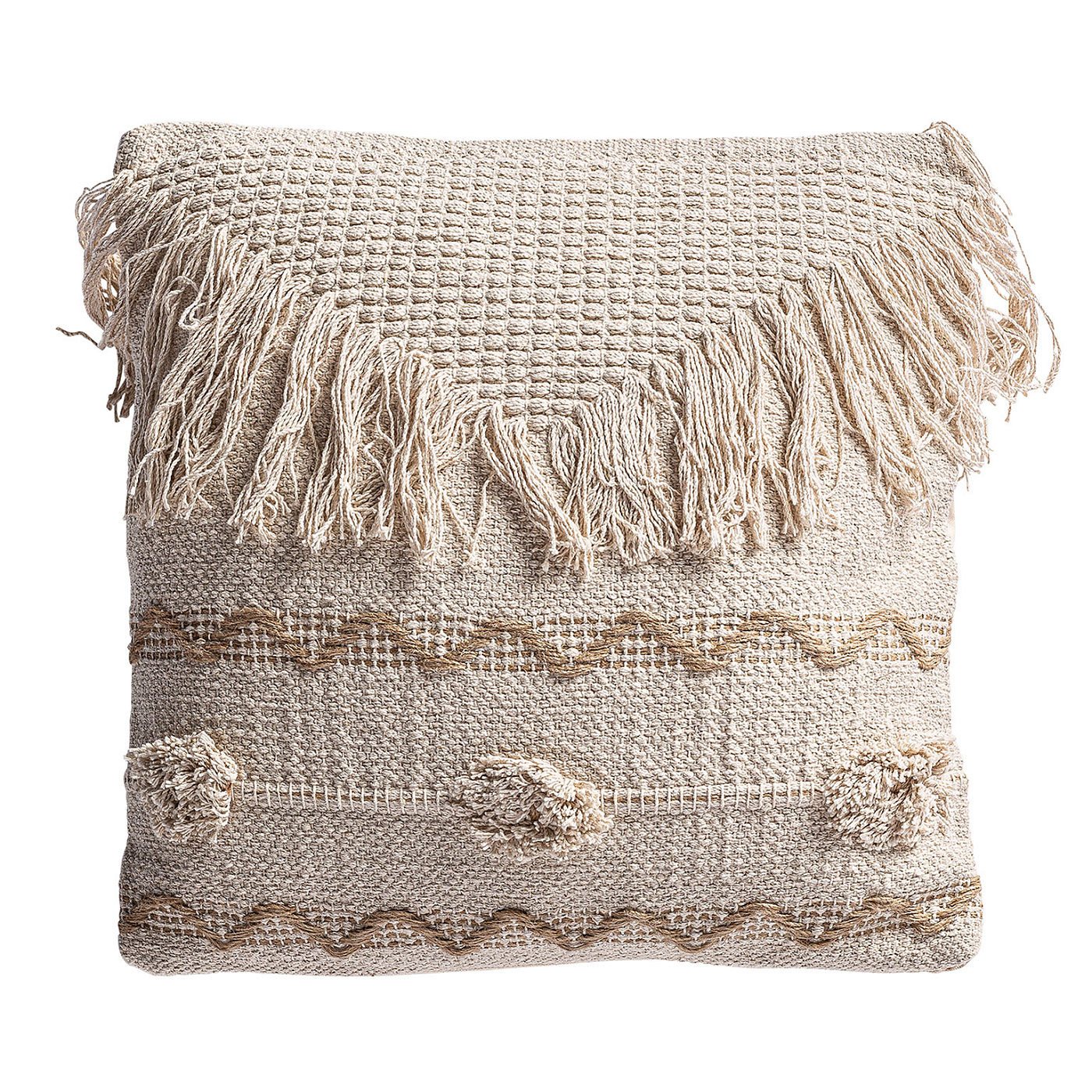 Подушка YAIRA, цвет белый/натуральный с вышивкой, винтажный стиль. Изготовлен из джута в сочетании с хлопком.