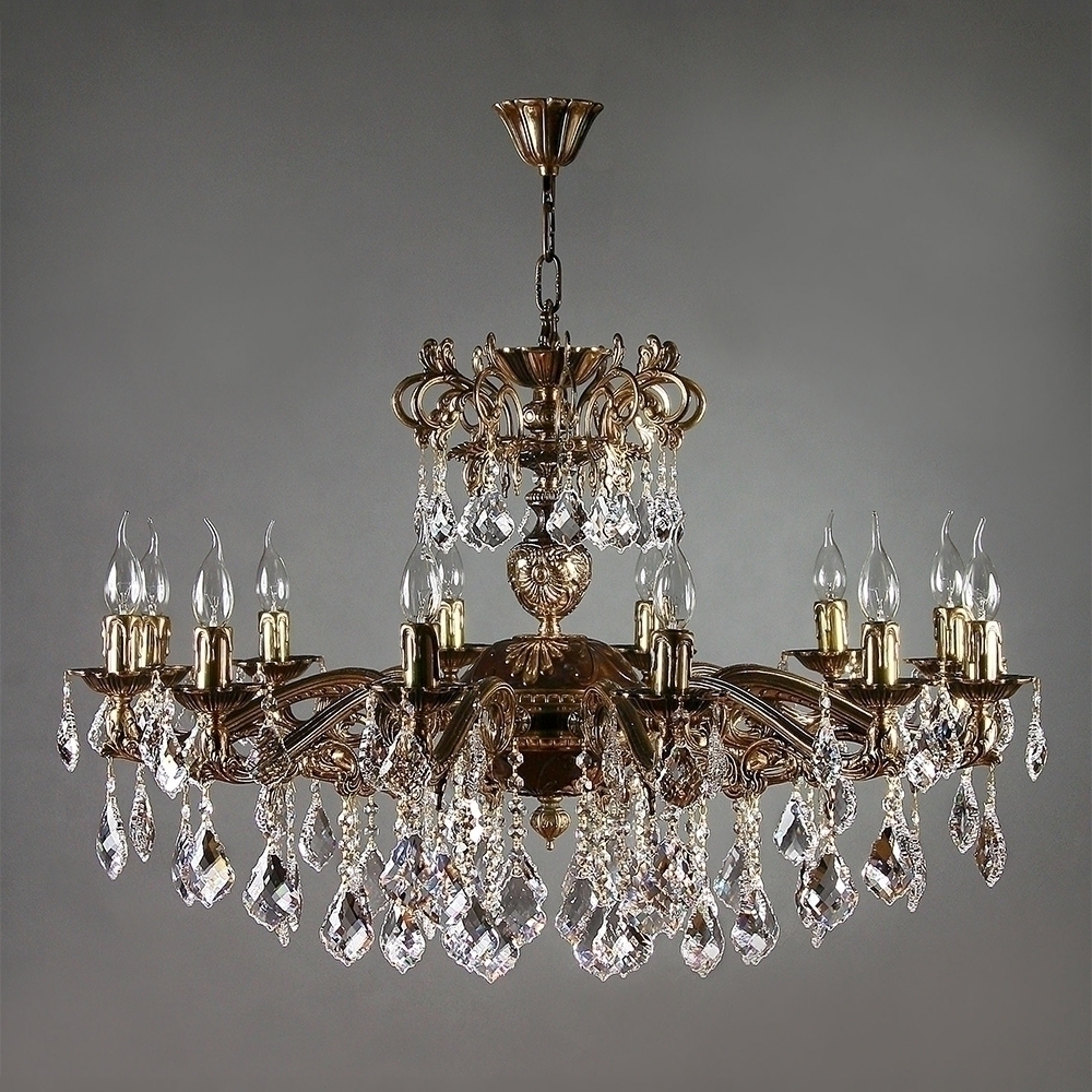 Люстра, выполненная из латуни в блестящей бронзовой отделке с подвесками в форме листа из хрусталя Asfour.