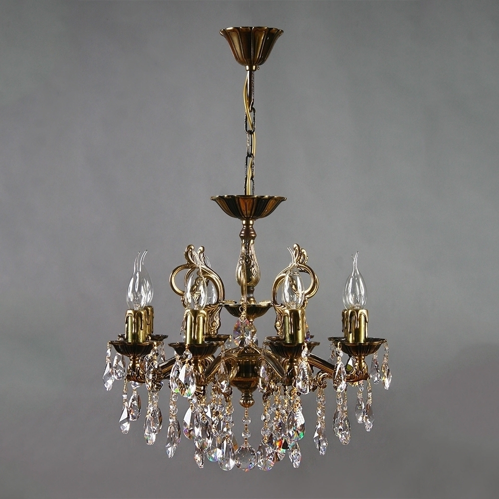 Люстра, выполненная из латуни в блестящей бронзовой отделке с подвесками в форме капли из хрусталя Asfour.