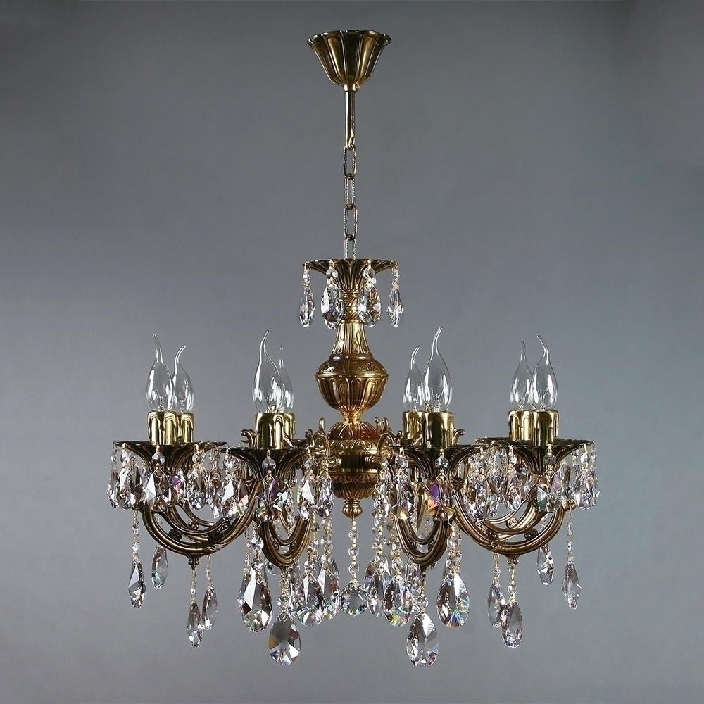 Люстра, выполненная из латуни в блестящей бронзовой отделке с подвесками в форме капли из хрусталя Asfour.