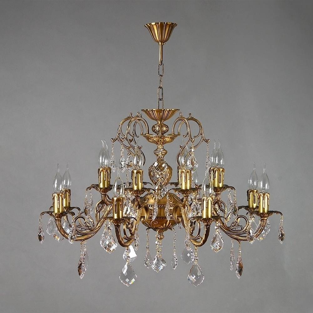 Люстра, выполненная из латуни в матовой бронзовой отделке с подвесками в форме листа из хрусталя Asfour.