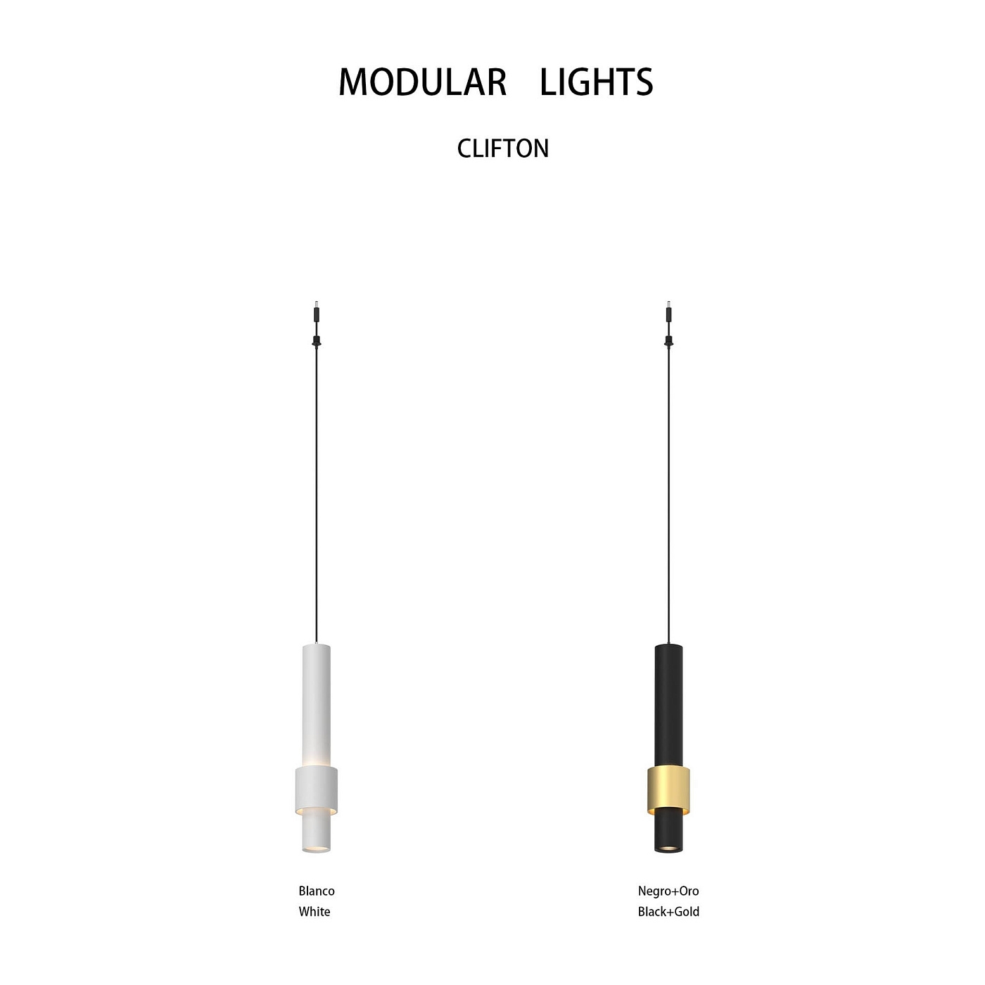 Коллекция модульных светильников CLIFTON Стильные подвесные светильники в лаконичном дизайне — идеальное решение для современного интерьера. Коллекция представлена в 2 цветовых вариантах: белый и чёрно-золотой. Преобразите пространство с помощью элегантных светильников CLIFTON — сочетайте цвета и создавайте уникальные световые композиции!