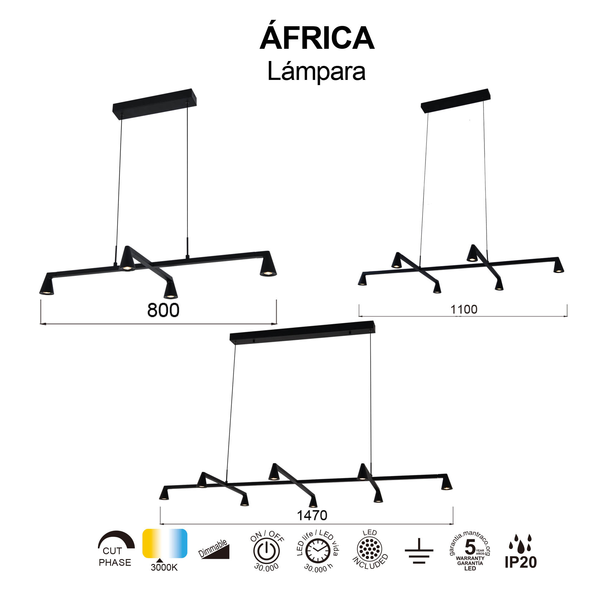 Коллекция Africa — это гармоничное сочетание минималистичного дизайна и функциональности. Серия включает в себя разнообразные модели потолочных, подвесных и напольных светильников, которые станут выразительным акцентом в любом интерьере. Строгие геометрические линии и обтекаемые контуры создают ощущение лёгкости и воздушности. Сдержанная цветовая гамма позволяет легко вписать их в разные стилистические решения — от скандинавского минимализма до современного лофта. в конструкции используются высококачественные материалы, обеспечивающие прочность и долговечность изделий. Некоторые модели отличаются изящными дугообразными формами, которые добавляют динамики и визуального интереса.