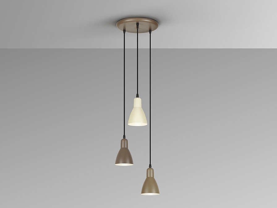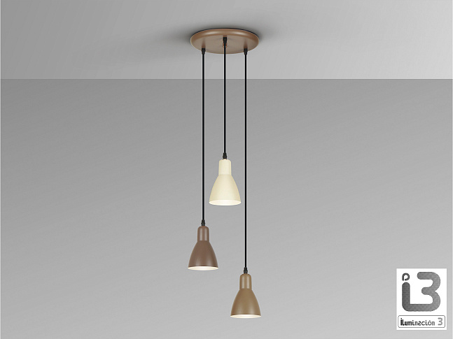 Круглый светильник на 3 лампы из металла, коричневого, темно-коричневого и кремового цветов. Регулируется по высоте. 3 цоколя E27.