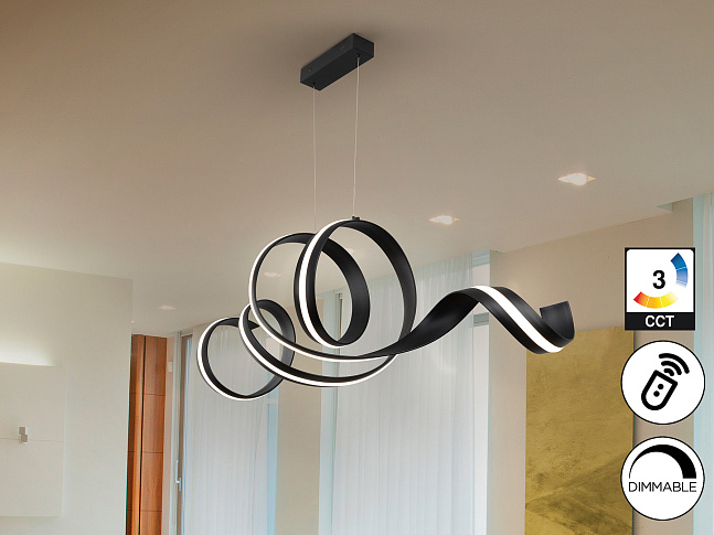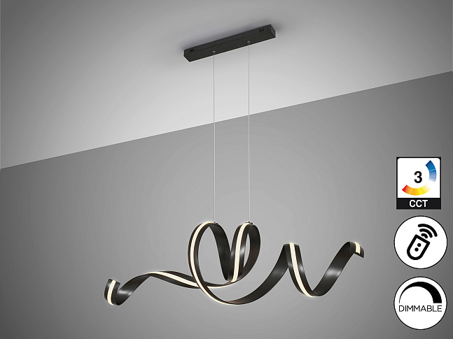 Большой горизонтальный светильник из стали и алюминия, матово-черное покрытие. Силиконовый рассеиватель. Регулируемая высота. Светодиодное освещение 80 Вт, CCT: 2700-5000 К., 5200 лм. С РЕГУЛИРУЕМОЙ ЯРКОСТЬЮ. В комплект входит пульт дистанционного управления. · Эта лампа поставляется с GRAVITY TOGGLES для улучшения крепления к потолку. Этот продукт использует диммер и радиочастотный пульт дистанционного управления для регулировки интенсивности и цветовой температуры. Совместим с приложением TUYA для регулировки света со смартфона или планшета...доступна версия 110 В.