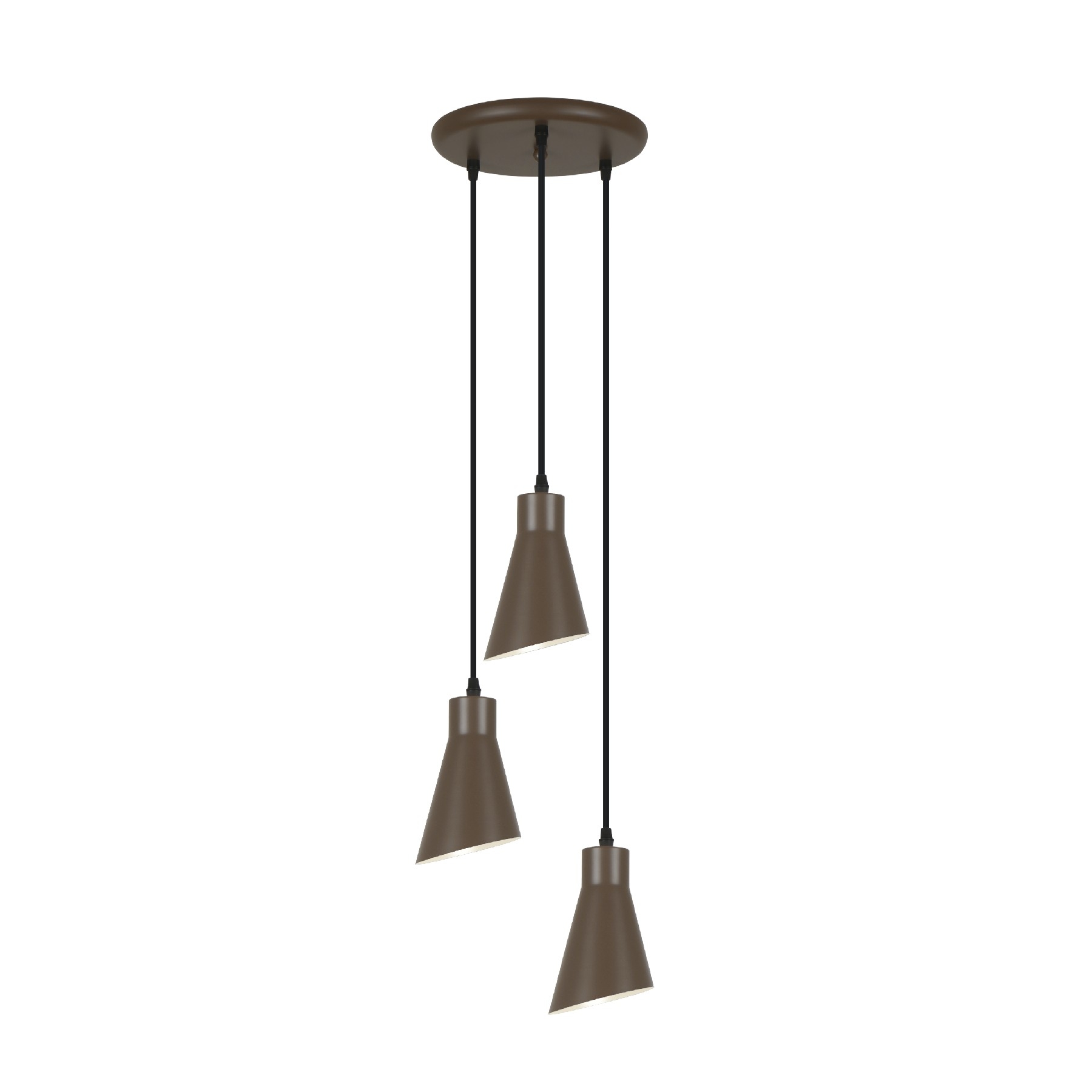 Круглый светильник на 3 лампы из металла, тёмно-коричневого цвета. Регулируется по высоте. 3 цоколя E27.