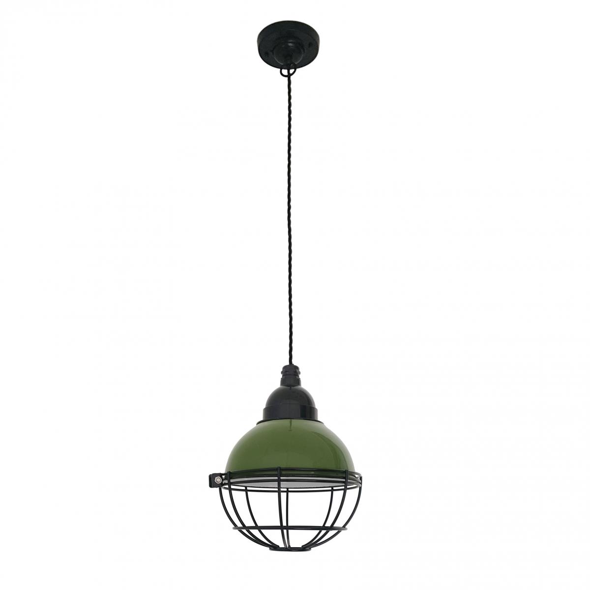 CLAIRE - зеленый подвесной светильник с круглой металлической рамой и частью из черной сетки. Его дизайн вдохновлен огнями, которые освещали рыбацкие лодки . Доступен в других цветах.
