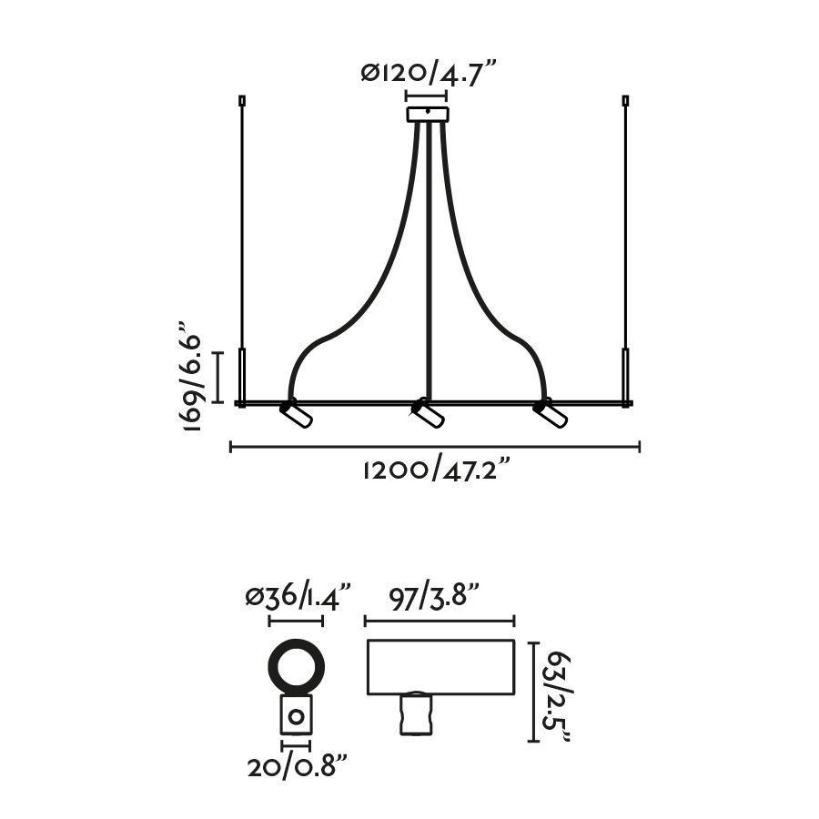 CLAP Линейный подвесной светильник черный 3x6W 3000K 38º