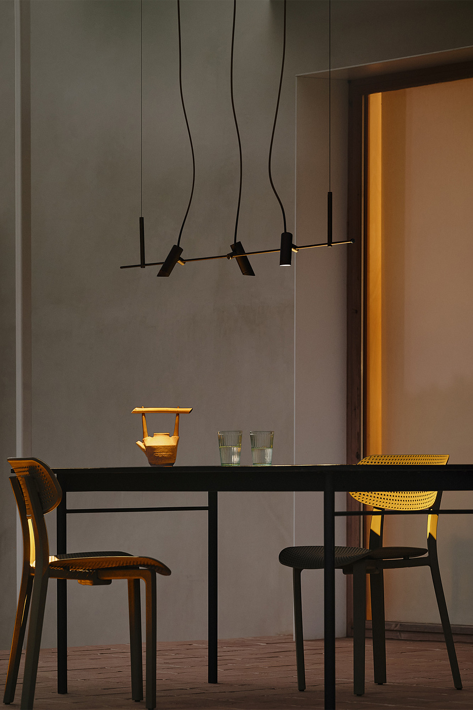 CLAP — это система освещения для открытых пространств, отличающаяся своим архитектурным и многофункциональным характером. Он предлагает различные решения прямого/непрямого освещения с единой эстетикой (стойки, маяки, настенные светильники, подвески, проекторы для деревьев и т. д.). Линейный подвесной светильник CLAP с почти невидимой структурой и объемом отводит все внимание акцентному свету и идеально подходит для создания живописных пространств в галереях и полукрытых помещениях. Он черного цвета, цветовая температура 3000К и угол обзора 38°. Вы можете комбинировать проекторы с антибликовым козырьком арт. 75714-2 для оптимизации визуального комфорта.