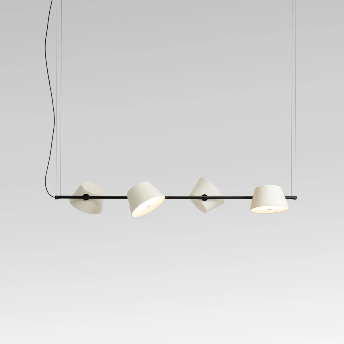 Можно заказать Tam Tam на четыре или шесть абажуров. Соответственно длина мачты, на которой они закрепляются, составляет 145 или 217 сантиметров. Расстояние от потока регулируется, абажуры можно опустить максимум на 200 сантиметров.