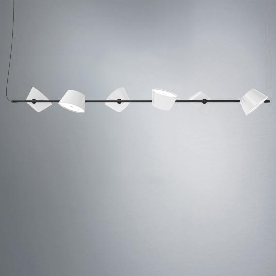 Можно заказать Tam Tam на четыре или шесть абажуров. Соответственно длина мачты, на которой они закрепляются, составляет 145 или 217 сантиметров. Расстояние от потока регулируется, абажуры можно опустить максимум на 200 сантиметров.