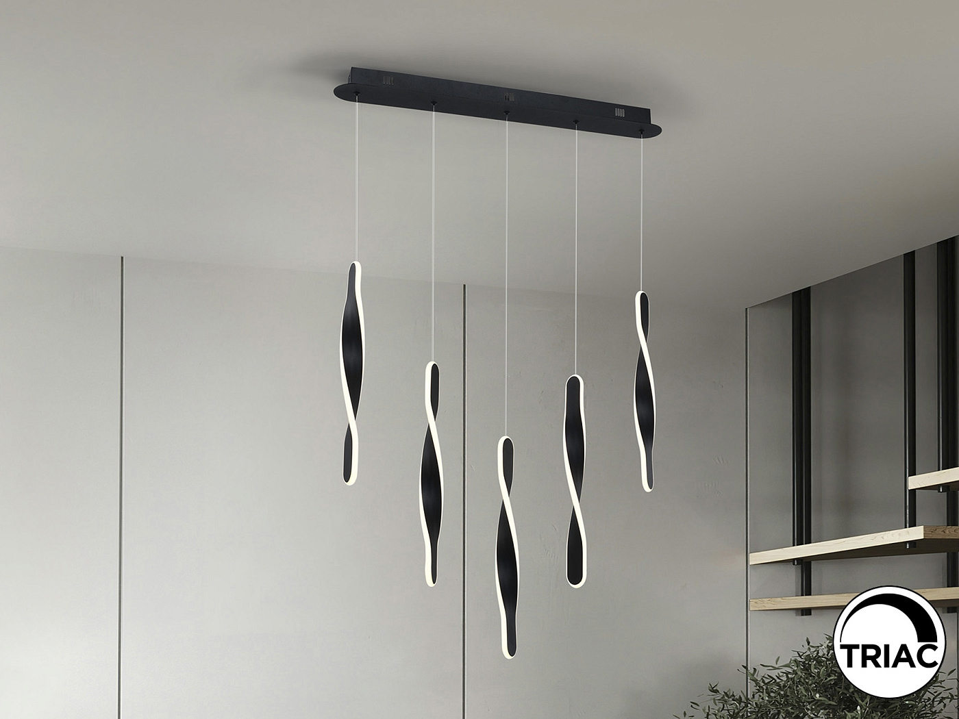 Лампа на 5 ламп из металла с матово-черным покрытием. Рассеиватель из опалового силикона. 50 Вт, 3400 лм, 3000 К. РЕГУЛИРУЕМАЯ ЯРКОСТЬ. В этом продукте используется светодиодный драйвер с симисторным типом и регулировкой яркости 0-10 В. Яркость можно регулировать с помощью настенного светодиодного диммера с этими функциями. · Эта лампа поставляется с ГРАВИТАЦИОННЫМИ ПЕРЕКЛЮЧАТЕЛЯМИ для улучшения фиксации на потолке.