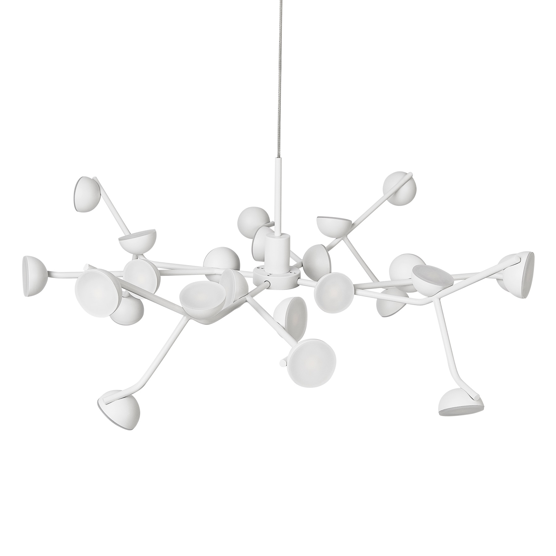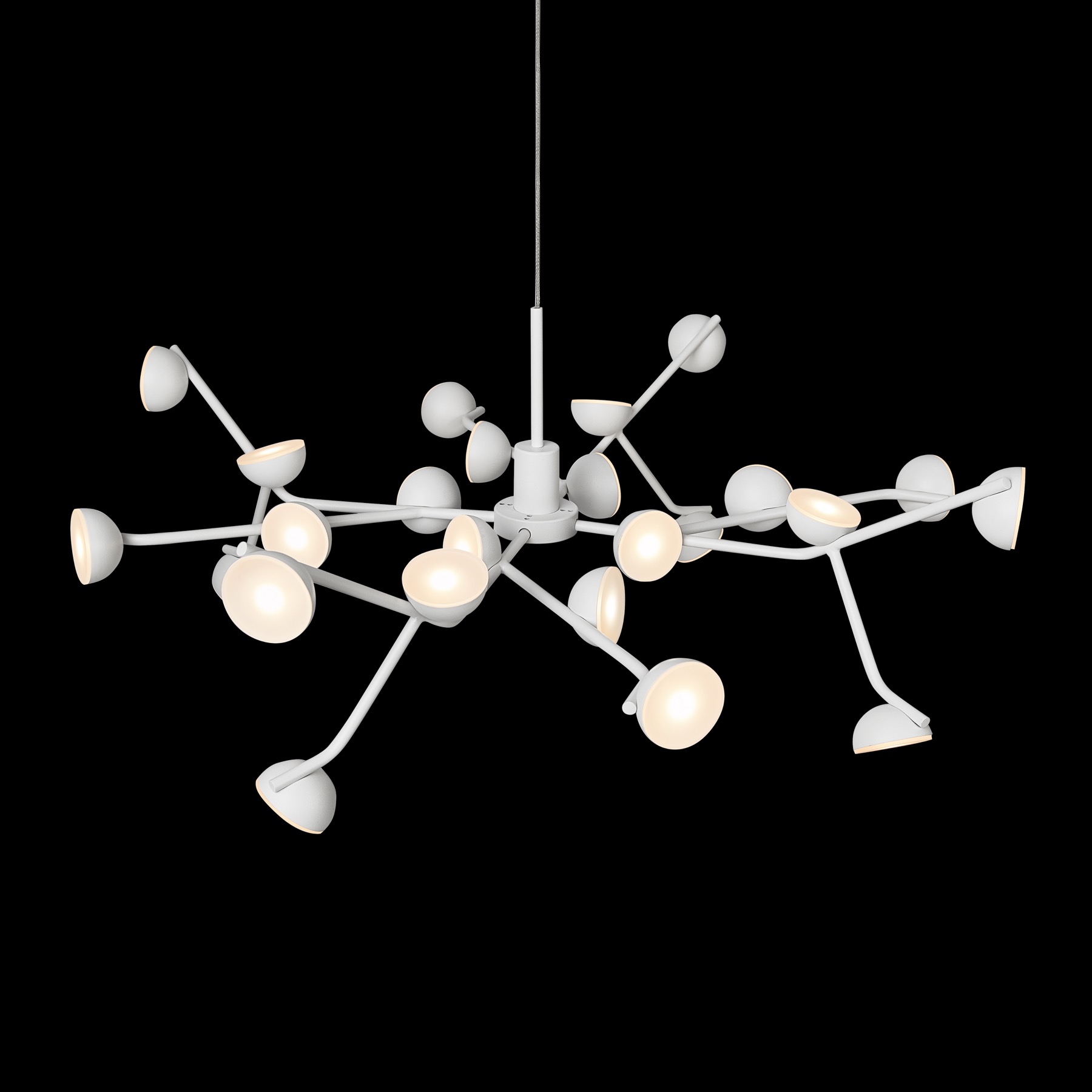 Светильник Adn, выполненный из металла, с анархическим распределением точек освещения, соответствует структуре ДНК, с художественным и визуальным балансом. В качестве основной характеристики, его рамы, декорированные белой эпоксидной смолой, дают возможность замены светодиодных точек, если это необходимо.