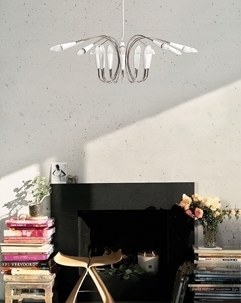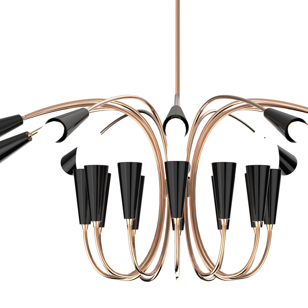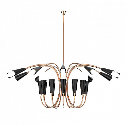Люстра Aretha от португальского бренда Delightfull обладает особым шармом и обаянием. Ее дизайн сочетает в себе элементы стилей модерн и ретро. В середине ХХ века дизайнеры именно так представляли себе люстру будущего. Сейчас именно так мы представляем себе светильник из прошлого. Люстра Aretha может работать в нескольких режимах: только верхние лампы, только нижние либо и те и другие. Каркас люстры изготовлен из меди и алюминия. Клиентам предоставляется возможность выбрать цвет патронов. Все люстры и светильники Delightfull изготавливаются только вручную и только по индивидуальным обращениям.