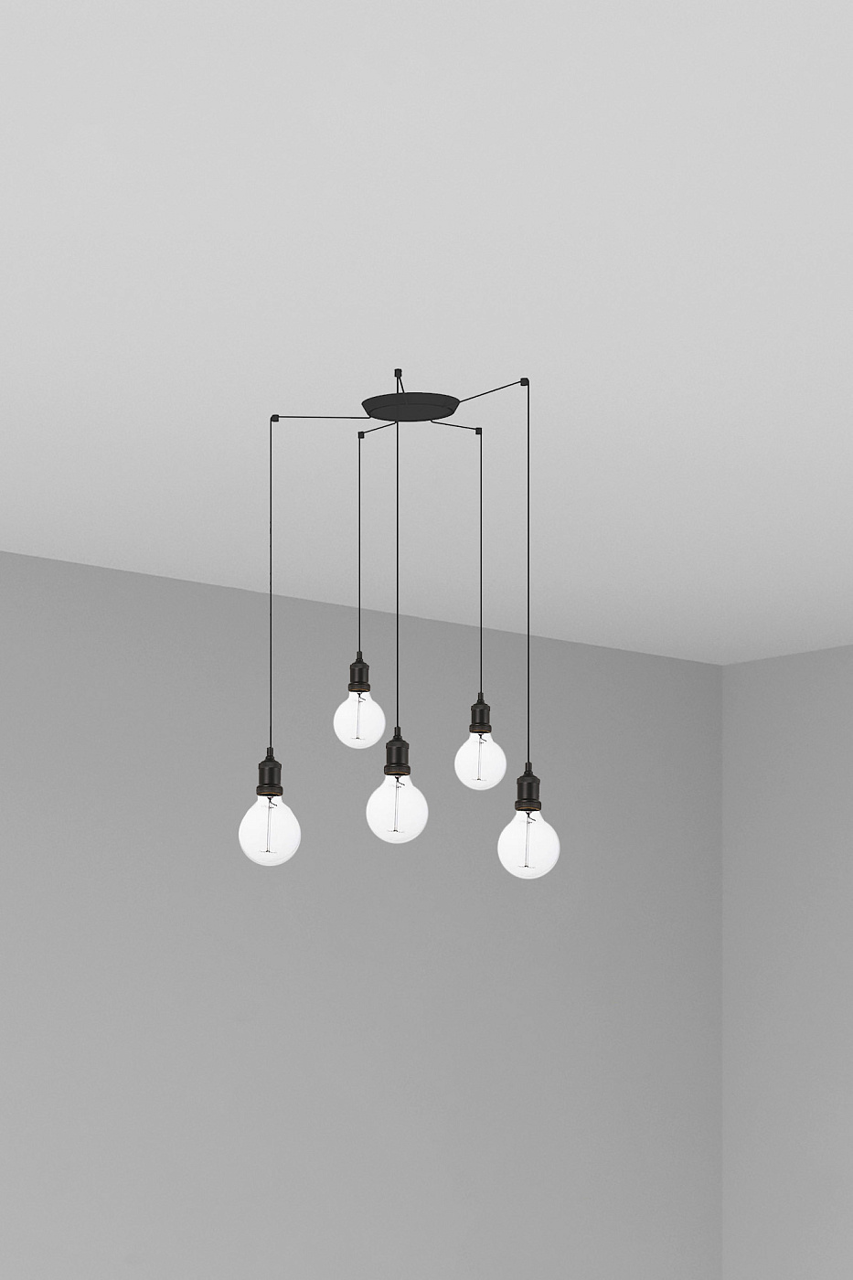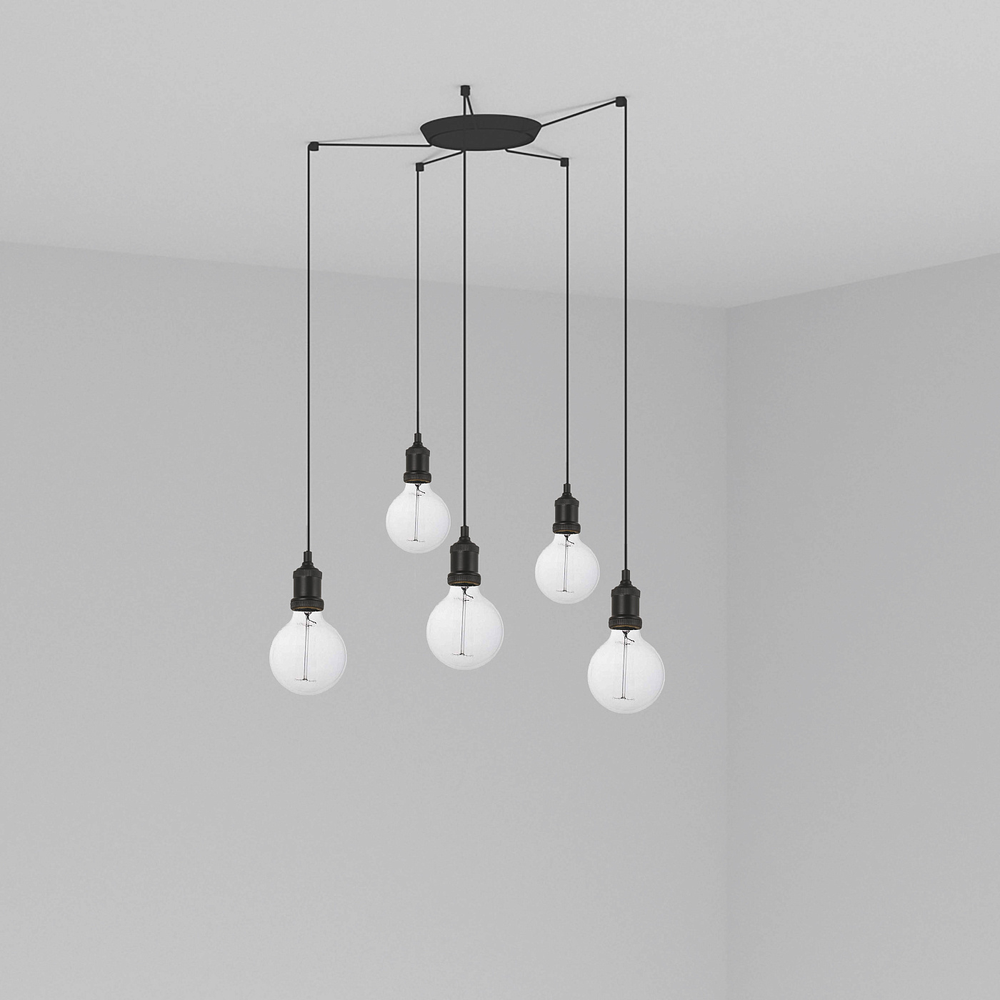 ART - подвесной патрон для внутреннего освещения. Этот декоративный патрон для лампы черного цвета - идеальный способ осветить окружающую среду в очень современном стиле. Версия с многократной потолочной розеткой с 5 лампами.