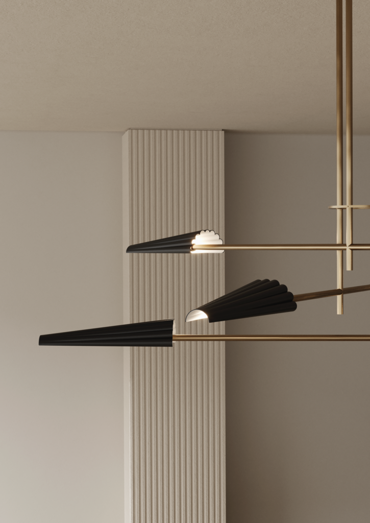 Люстра Bion 6L золотая с черными абажурами