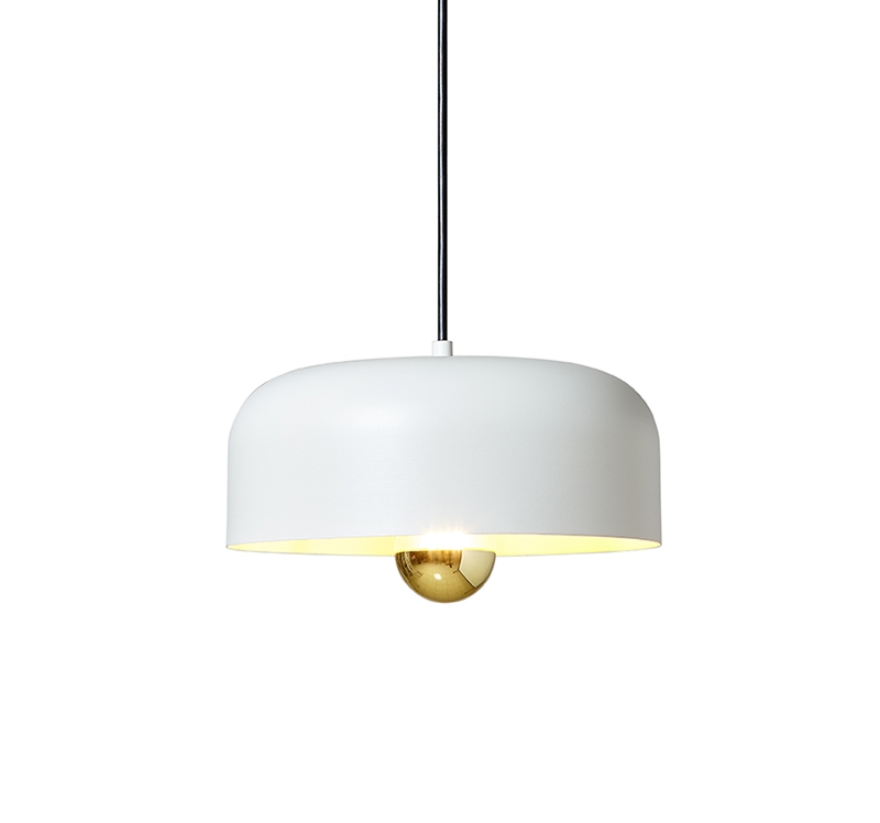 Подвесные светильники Born с двумя закругленными плафонами разного диаметра оставляют на виду декоративную лампочку с золотым или серебряным куполом. Эти светильники, благодаря своей простоте и минималистичному стилю, особенно хорошо подходят для реставрационных проектов, кухонь или рабочих зон, как по отдельности, так и в серии. Они могут быть изготовлены из черного, белого или полированного алюминия.