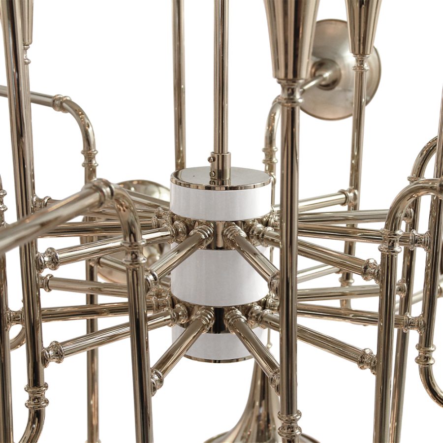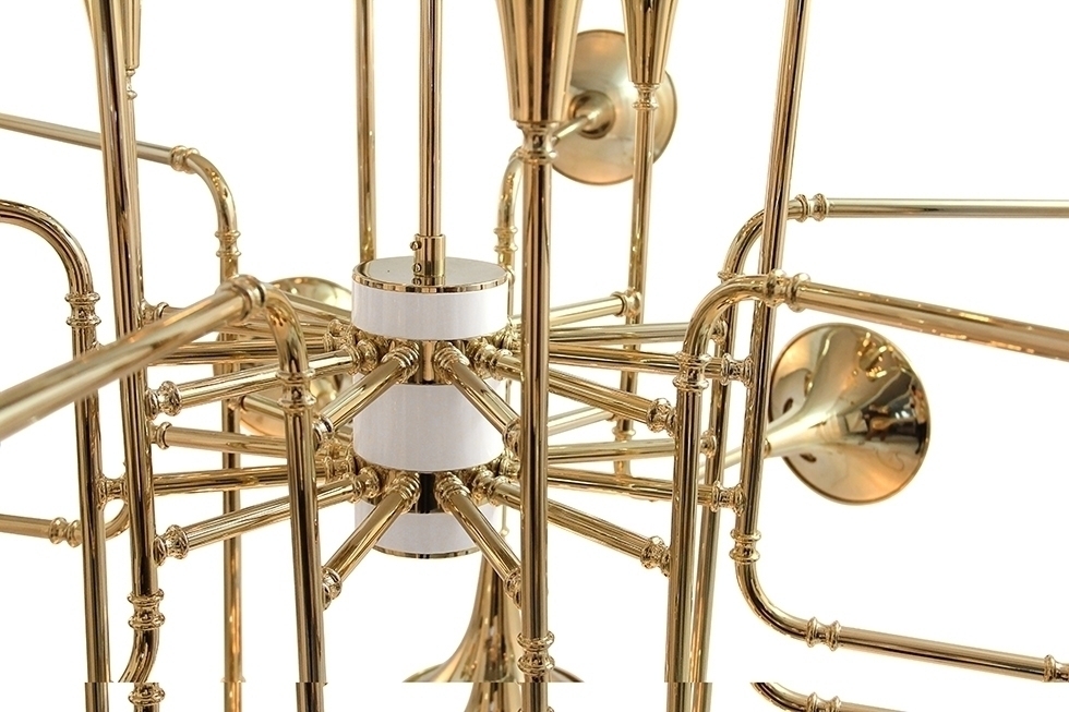 Люстра Botti от португальского бренда Delightfull подобно профессиональному оркестру, демонстрируя все многообразие духовых инструментов, приглашает нас на свой концерт. Структура люстры изготовлена из меди и покрыта сусальным золотом – полностью ручная работа, демонстрирующая мастерство и высокий уровень квалификации специалистов компании Delightfull. Несомненно, купив люстру Botti, Вы навсегда разделите историю своего дома на «до» и «после». Люстра Botti, как и другие светильники Delightfull, изготавливается из материалов и комплектующих самого высокого качества и доступна в разных цветах и вариантах отделки.