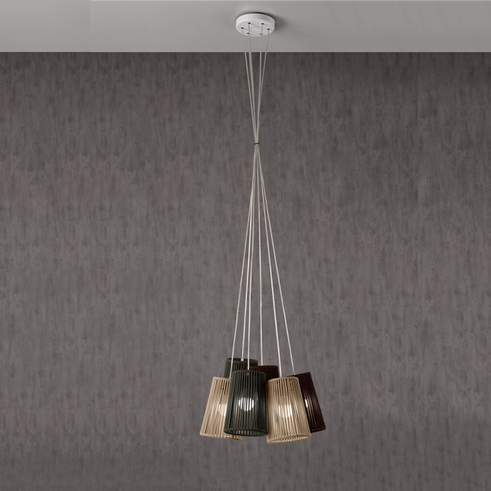 Вместе будет лучше. Набор из 6 шнуровых абажуров BOUQUET, где вы можете сочетать цвета, персонализирующие любое интерьерное решение. 6 подвесок с абажурами "Drum-eco Ø 18" (другие модели абажуров, спросите цитату). Цвета абажура могут быть выбраны с “любой " комбинацией шнуров стандартных цветов (нестандартные цвета, пожалуйста, попросите минимальное количество).