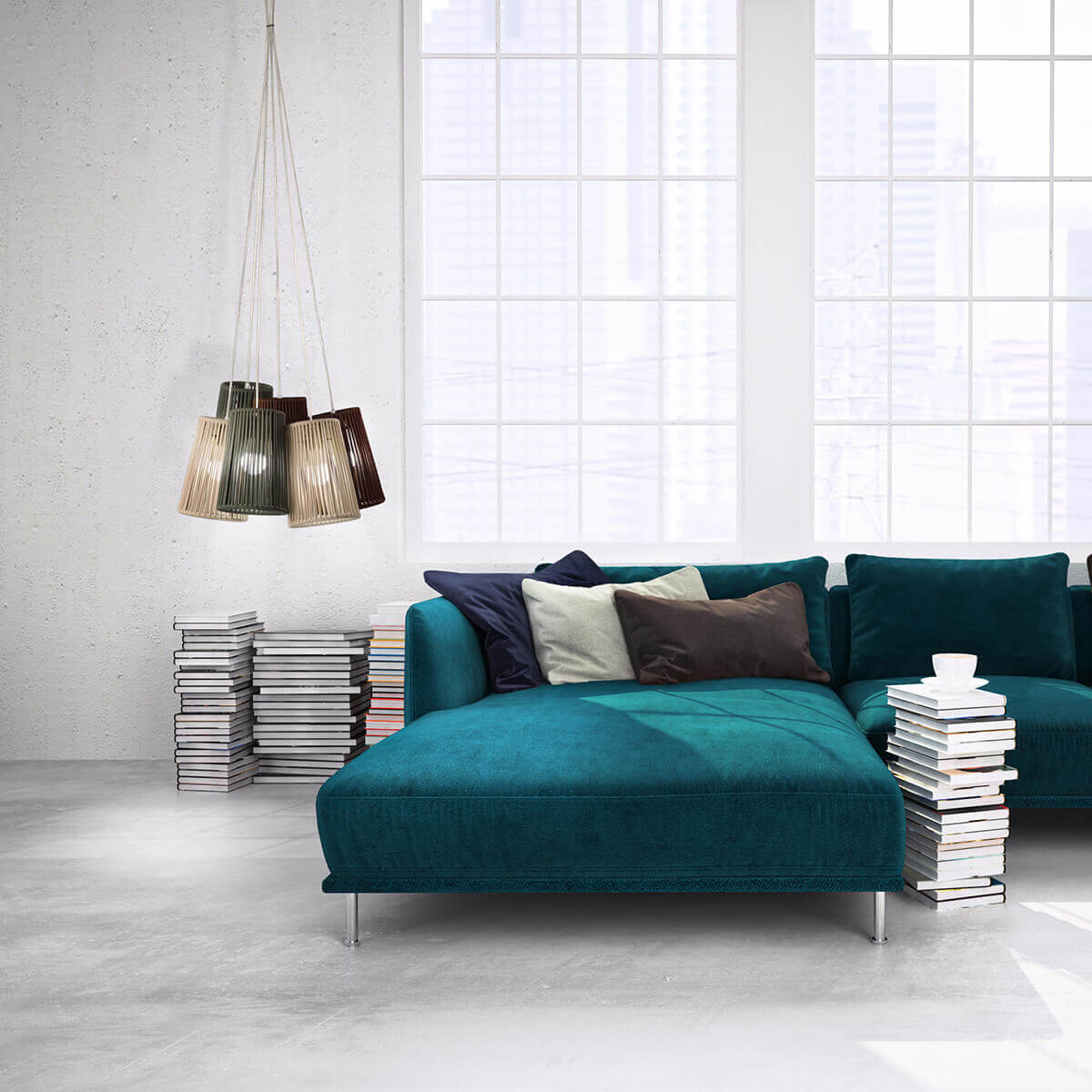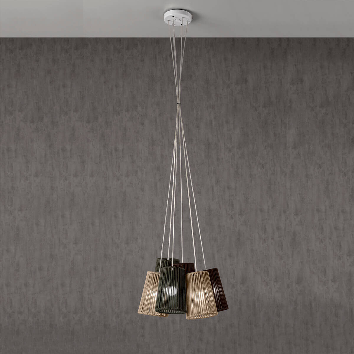 Вместе будет лучше. Набор из 6 шнуровых абажуров BOUQUET, где вы можете сочетать цвета, персонализирующие любое интерьерное решение. 6 подвесок с абажурами "Drum-eco Ø 18" (другие модели абажуров, спросите цитату). Цвета абажура могут быть выбраны с “любой " комбинацией шнуров стандартных цветов (нестандартные цвета, пожалуйста, попросите минимальное количество).