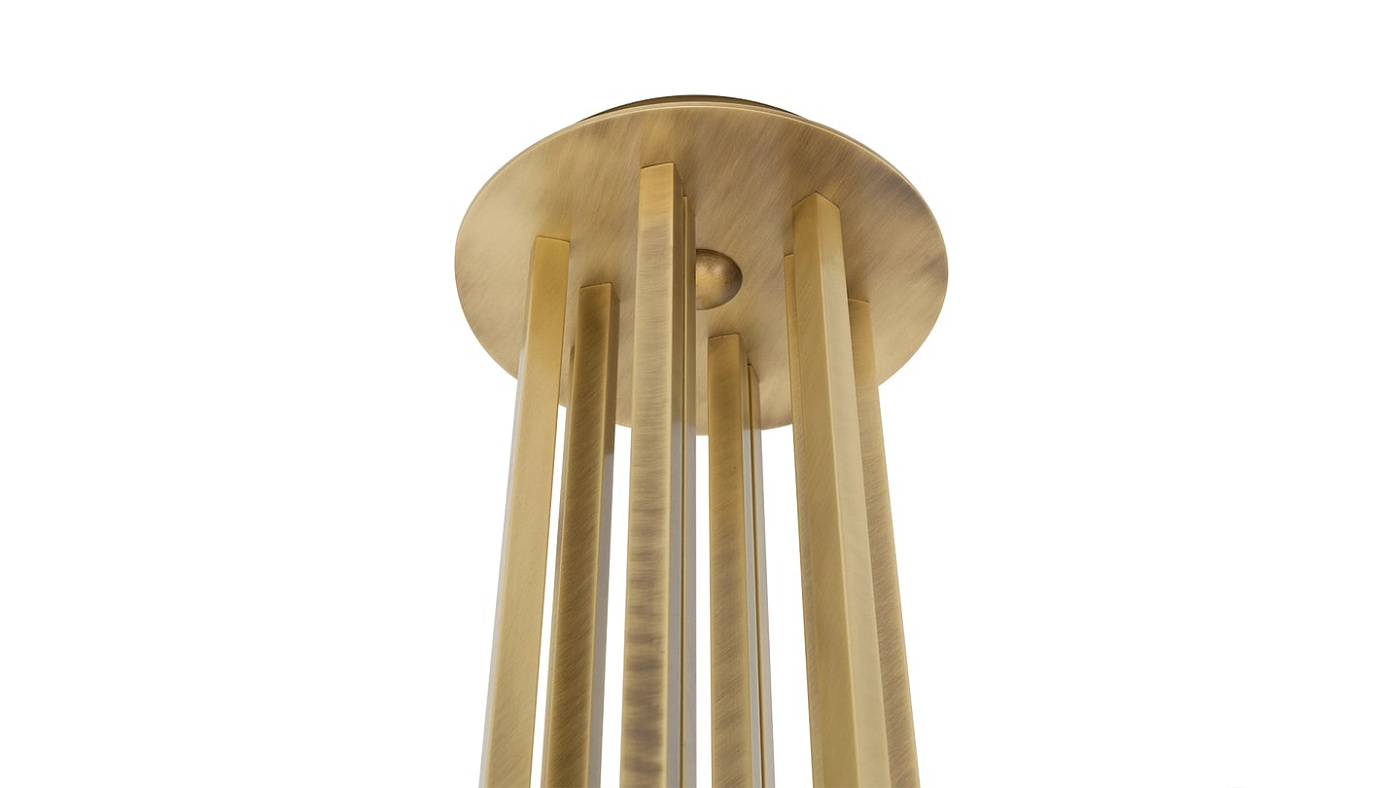 Для тех, кто хочет заявить о себе с помощью высоких потолков, обратите внимание на культовый дизайн BROOME. Замысловатая угловатая металлическая рама подвешивает шесть шелковых плафонов еще над четырьмя, в то время как рассеиватели обеспечивают рассеянное свечение множества источников света.