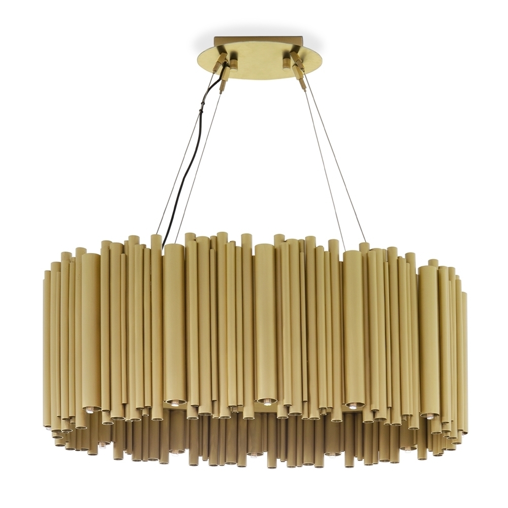 Люстра Brubeck от компании Delightfull (Португалия) – это возвращение к истокам стиля арт-деко. Эта люстра состоит из множества медных труб, собранных воедино. Внешне она напоминает орган – именно этот музыкальный инструмент вдохновил дизайнеров из Delightfull на создание люстры Brubeck. Особенность ее конструкции заключается в том, что из медных трубок можно создавать люстры любых размеров и форм: круглую, овальную, квадратную или прямоугольную.