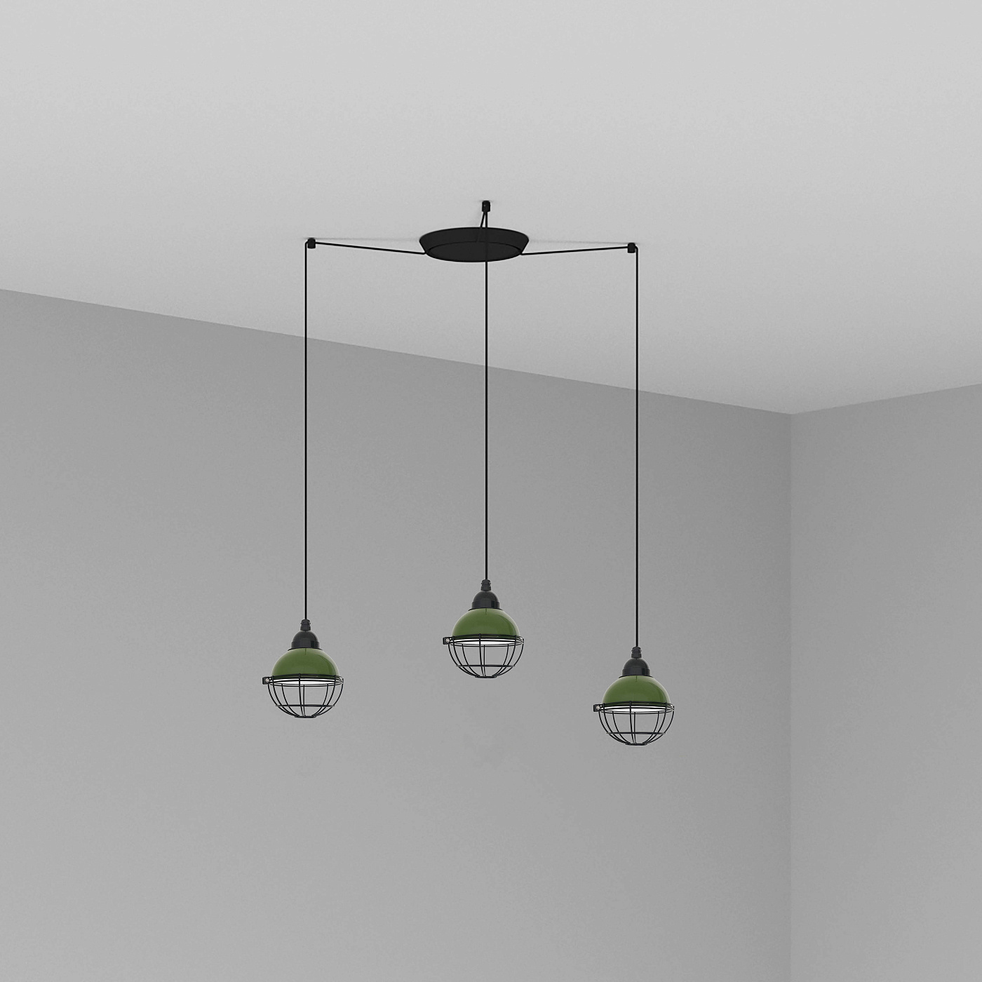 CLAIRE - это зеленый подвесной светильник с круглой металлической структурой и зеленой решетчатой частью. Его дизайн вдохновлен огнями, которые освещали рыбацкие лодки. Доступен в других цветах. Версия с несколькими потолочными розетками с 3 лампами.