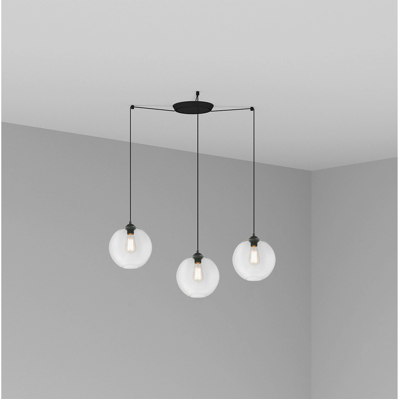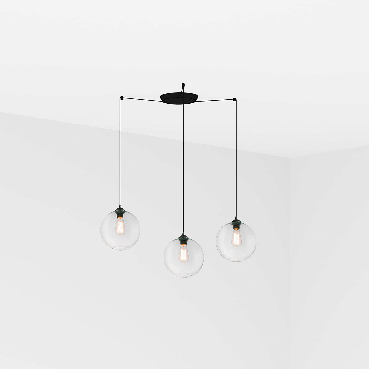 Подвесной светильник из стекла для внутреннего освещения. Инновационный дизайн, индустриальный воздух и современный стиль. CLARA - идеальный декоративный светильник для домашнего и ресторанного освещения. Версия с несколькими потолочными розетками с 3 лампами.