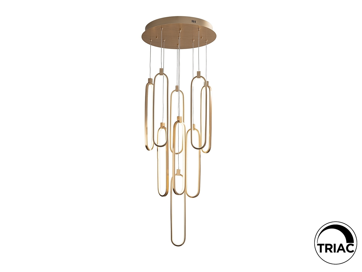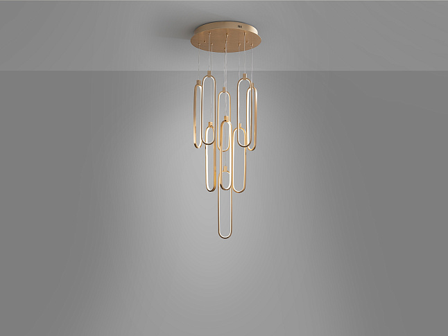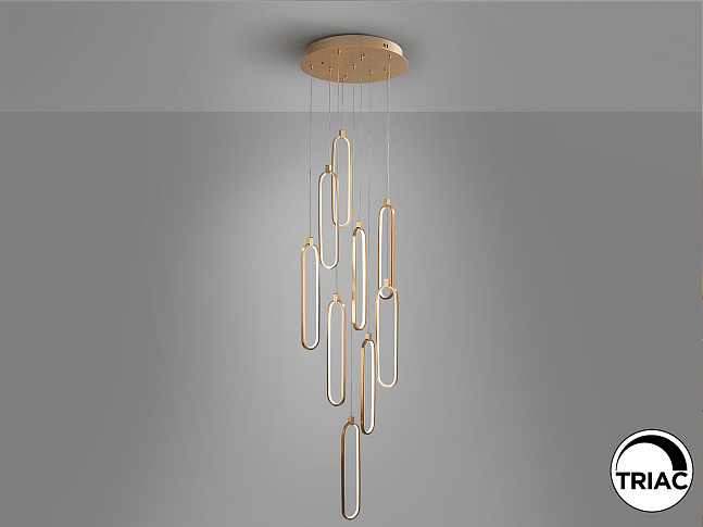 Светодиодная лампа с 9 лампами из матового алюминия с отделкой из розового золота. Регулируемая по высоте. Опаловые силиконовые рассеиватели. Светодиод 117 Вт, 5600 лм, 3000 К. С РЕГУЛИРОВКОЙ РЕГУЛЯЦИИ Этот продукт включает в себя светодиодные драйверы с триаком и диммером 0–10 В. Вы можете регулировать яркость этого изделия с помощью настенного симисторного переключателя или диммера 0–10 В. Любой другой тип диммера может повредить светодиодный драйвер. · Эта лампа поставляется с ГРАВИТАЦИОННЫМИ ПЕРЕКЛЮЧАТЕЛЯМИ для улучшения крепления к потолку