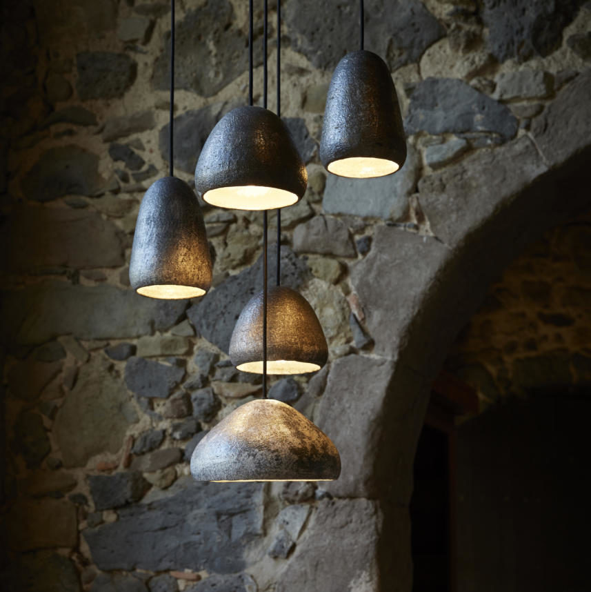 Подвесной светильник, содержащий алхимию четырех природных элементов: земли, воды, огня и воздуха. Его экраны изящно изготавливаются вручную, один за другим, трех разных диаметров и форматов. Размещенные поодиночке, онлайн или собранные на большом круглом основании, на разной или одинаковой высоте, они всегда создают свежую, эмоциональную, естественную атмосферу.