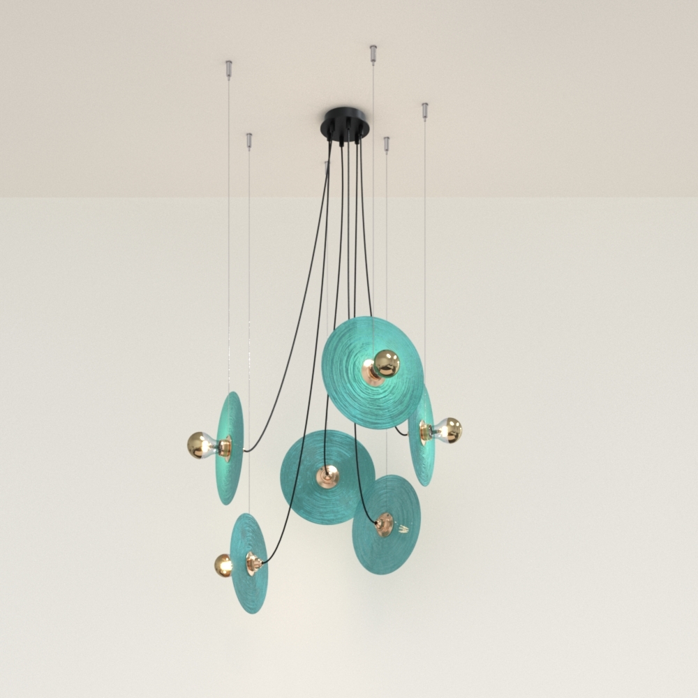 Люстра Fest 6L с бирюзовыми стеклянными дисками 1223