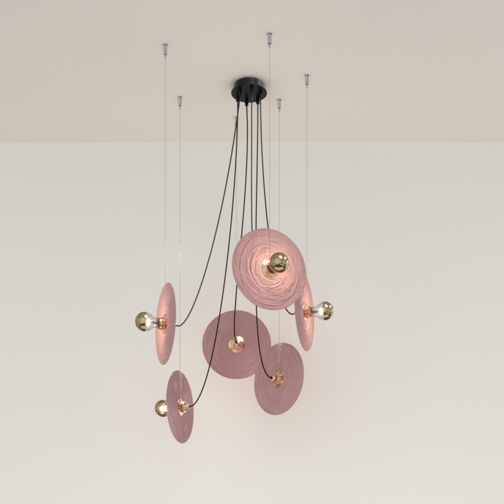 Люстра Fest 6L с розовыми стеклянными дисками 1223