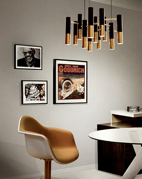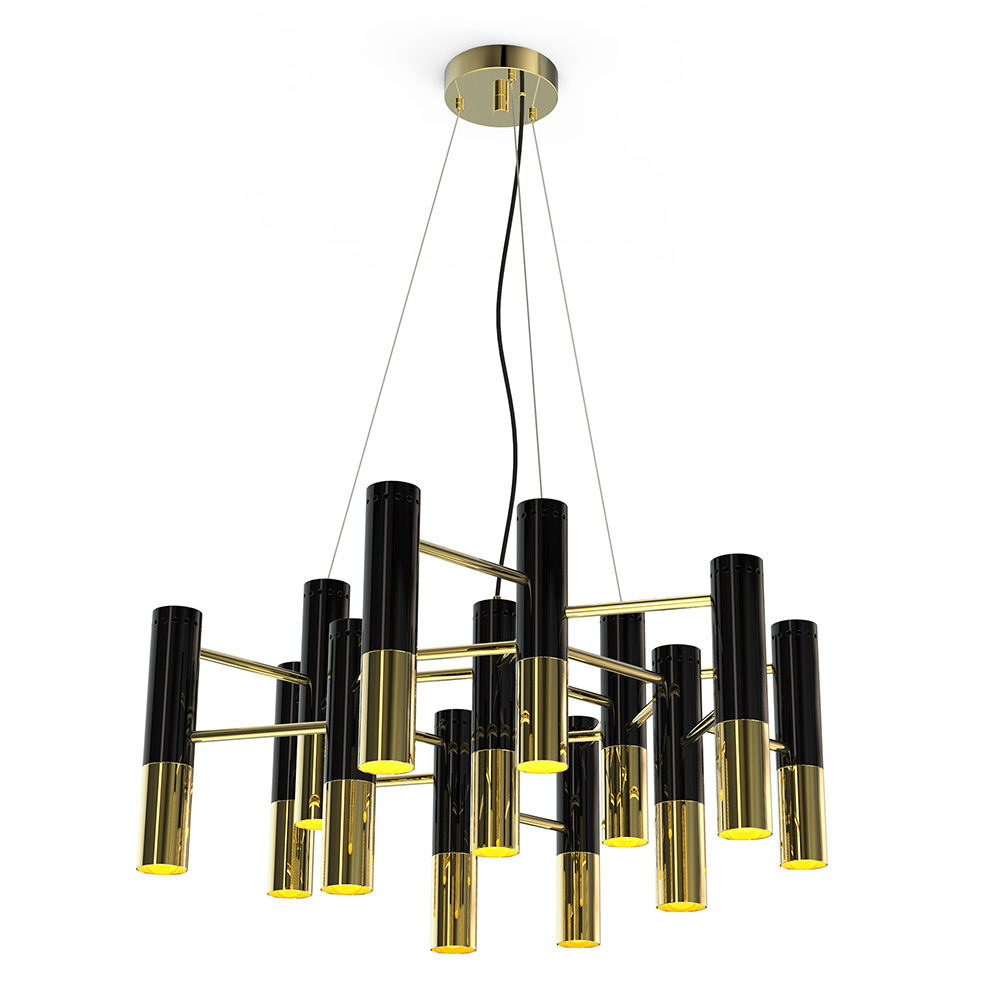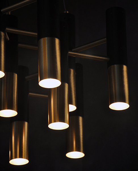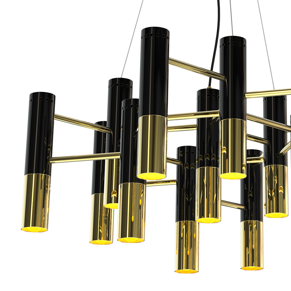 Люстра Ike – это, пожалуй, одна из самых стильных и гламурных люстр во всей коллекции светильников португальского бренда Delightfull. Каркас люстры изготовлен из меди и покрыт позолотой. Плафоны, по форме напоминающие микрофоны, изготовлены из алюминия. Модульная конструкция люстры позволяет изменять ее размеры и форму. Коллекция Ike, помимо люстры, также включает в себя напольный светильник (торшер). Все светильники Delightfull изготавливаются вручную из материалов и комплектующих самого высокого качества.