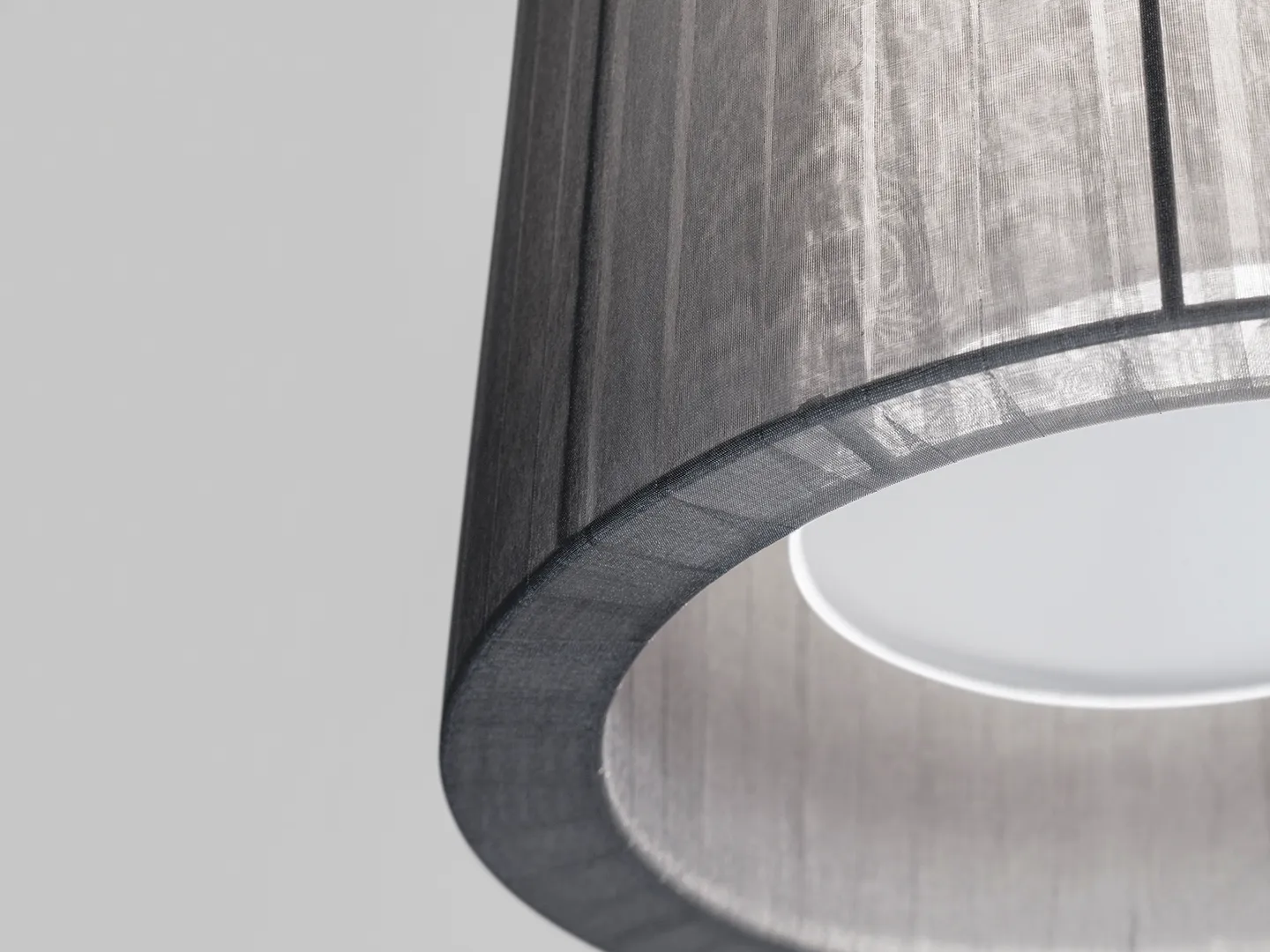 Уникальность коллекции Indiana заключается в абажуре из органзы. Поскольку прозрачность ткани снижается за счёт конического внутреннего рассеивателя, накладки придают светильнику интересную текстуру и объём.