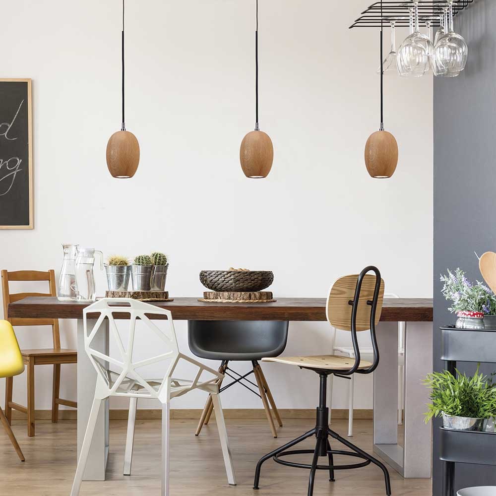 Потолочный светильник из коллекции Creta с хромированной конструкцией и абажуром овальной формы. Абажур изготовлен из дерева и доступен в отделке под дуб или с белым лаковым покрытием. Идеальный подвесной светильник для освещения обеденных столов или кухонных столешниц.