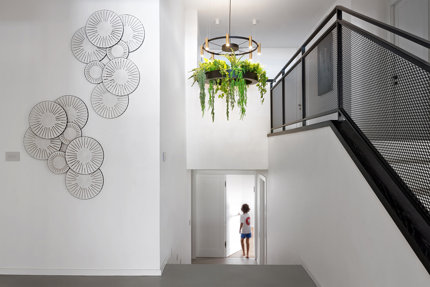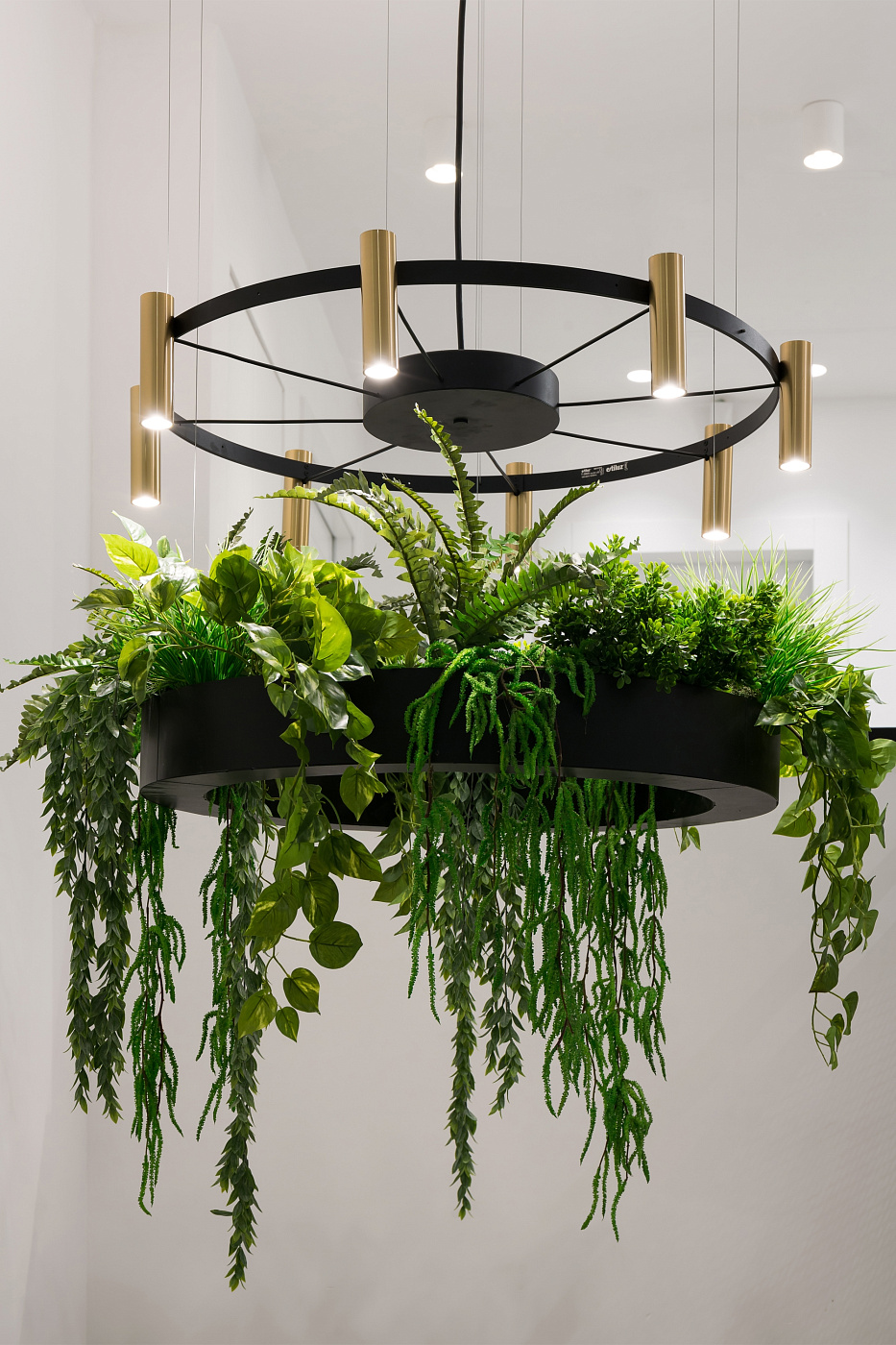 Люстра представляет собой стилизованное колесо с цилиндрическими лампами, которые могут излучать свет вверх и вниз. Laverd предлагается в двух размерах, которые можно комбинировать или соединять вертикально. Центральный элемент, подвешенный на стальных тросах, позволяет создавать различные формы.