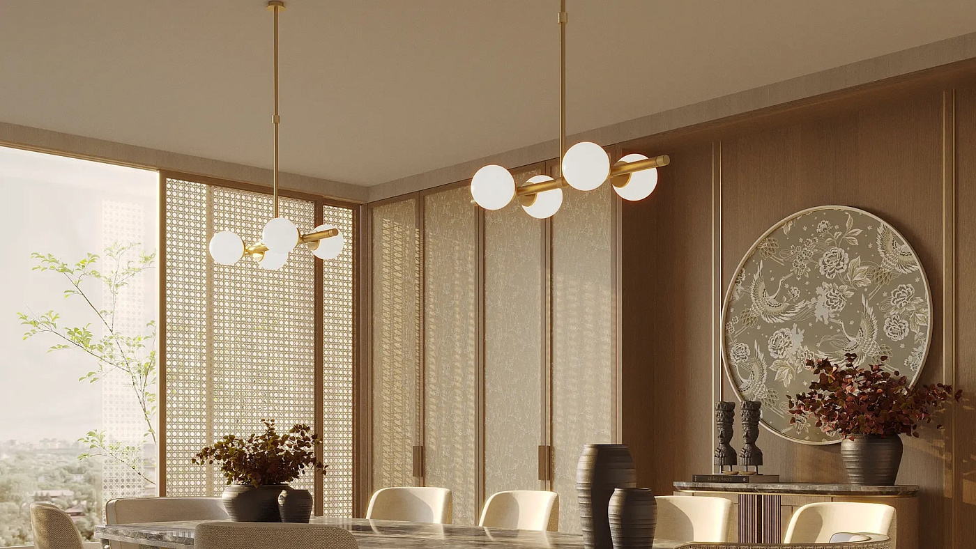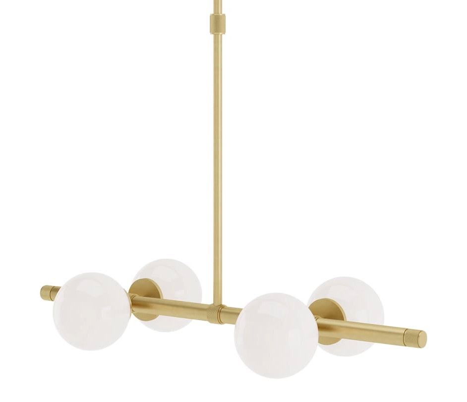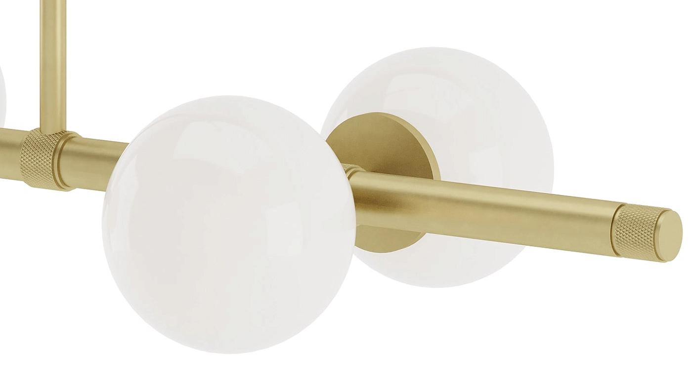 Прекрасно сбалансированный потолочный светильник LUND, подходящий для множества помещений, оснащен четырьмя шарами из опалового стекла, подвешенными к конструкции из матовой латуни, высоту которых можно регулировать в соответствии с вашими потребностями.