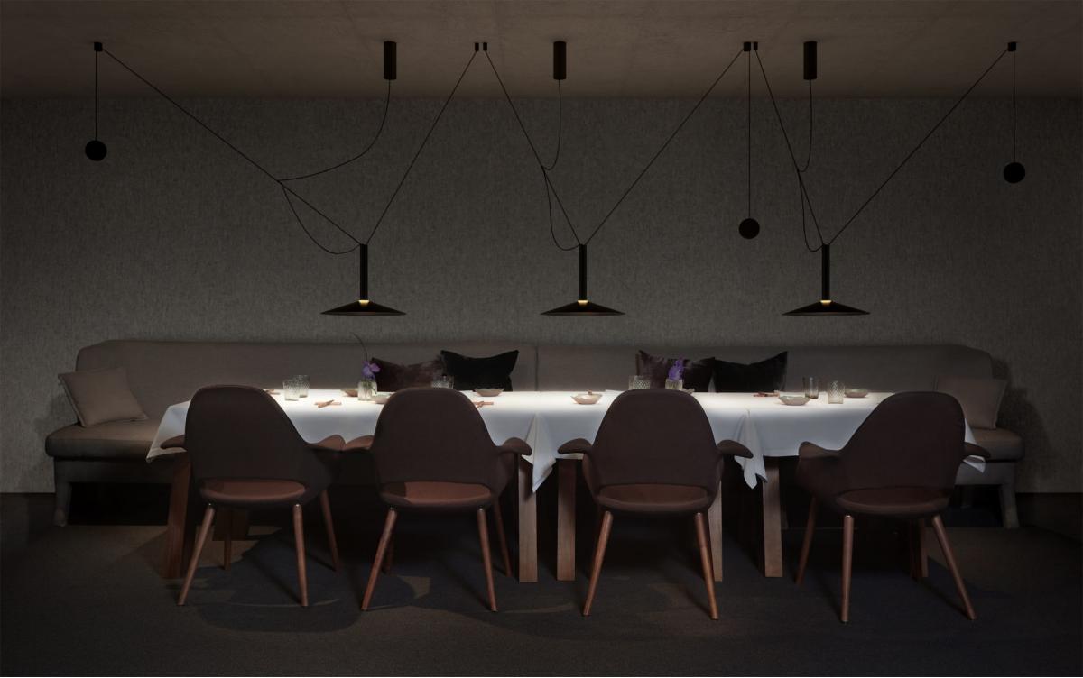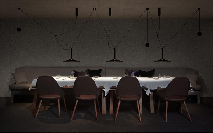 Milana представляет собой систему модульных подвесных светильников, которые сочетаются друг с другом и могут перемещаться как вертикально, так и горизонтально. Парадоксально, но этот новый дизайн начинается с деконструкции архетипа лампы; при его максимально возможном синтезе остается только цилиндрический корпус со встроенным светодиодом. К этому цилиндру мы можем добавить различные конические плафоны белого, черного, бежевого, серого или красного цвета, в нескольких размерах. Но самое гениальное то, что каждая из этих ламп может иметь простой противовес, так что, когда они подвешены между двумя точками, их можно перемещать. Практически незаметная линза закрывает светодиод и распределяет свет. Если используется только цилиндрическая лампа, направленный вниз свет будет безупречным, а при добавлении абажура свет ускользает, освещая саму лампу. Эта новая система освещения дает пользователю возможность управлять светом, предлагая новое концептуальное предложение.
