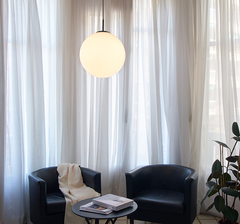 Коллекция Moon со стеклянным шаром, вдохновлённая винтажным дизайном, представлена в двух форматах, а также в различных размерах и вариантах отделки. Это универсальное изделие, которое подойдёт как для частного дома, так и для проектов по реконструкции.