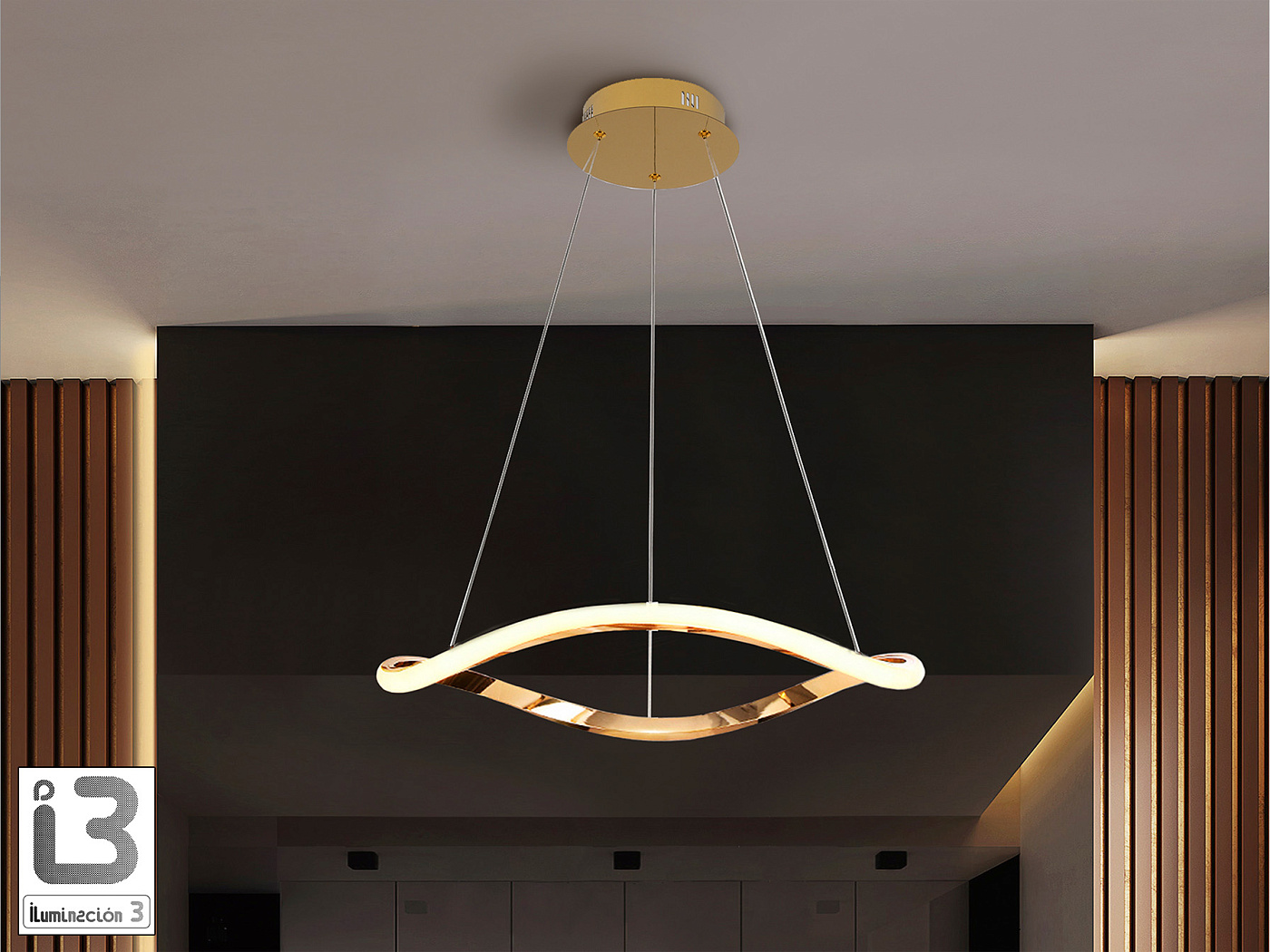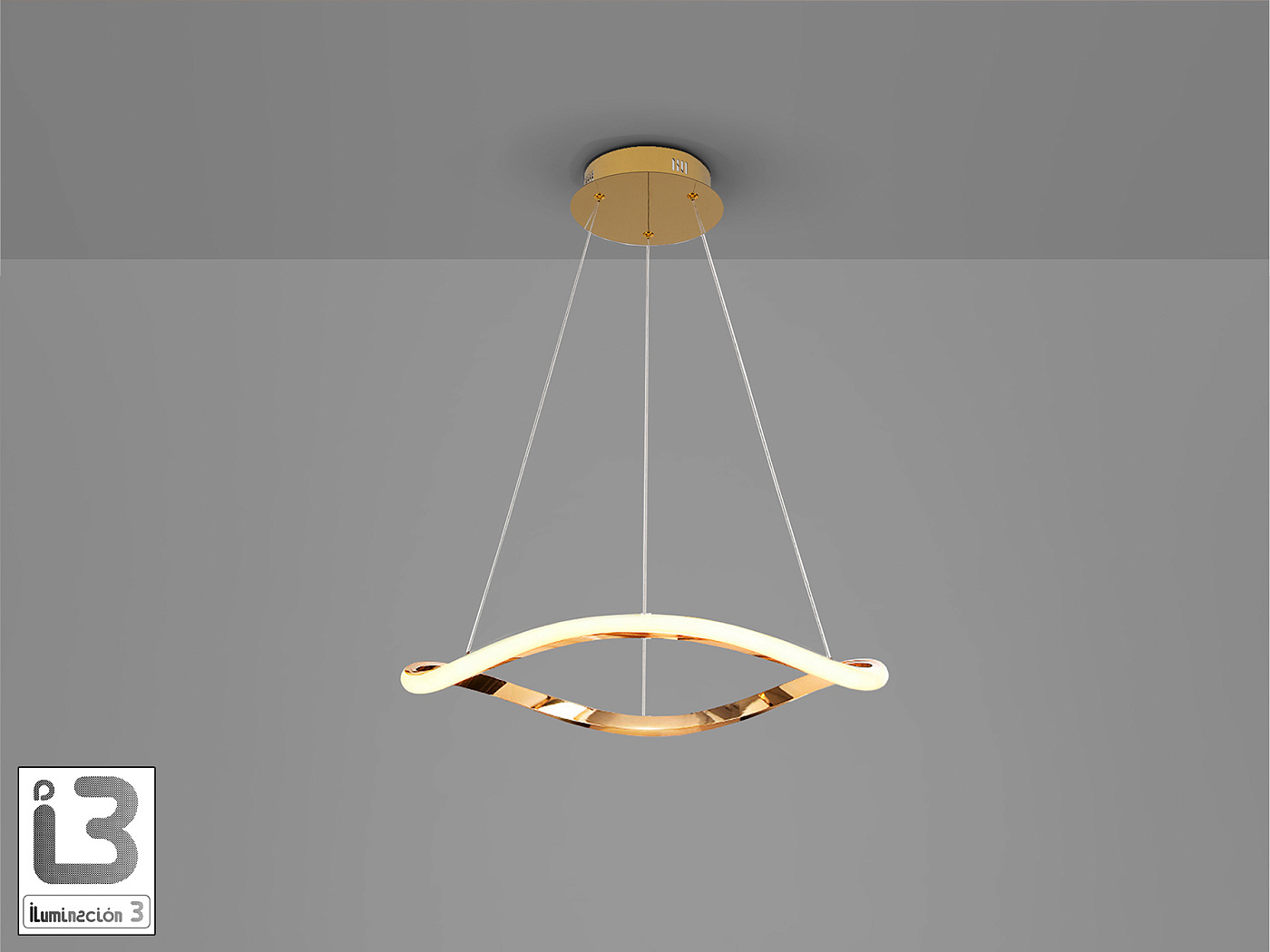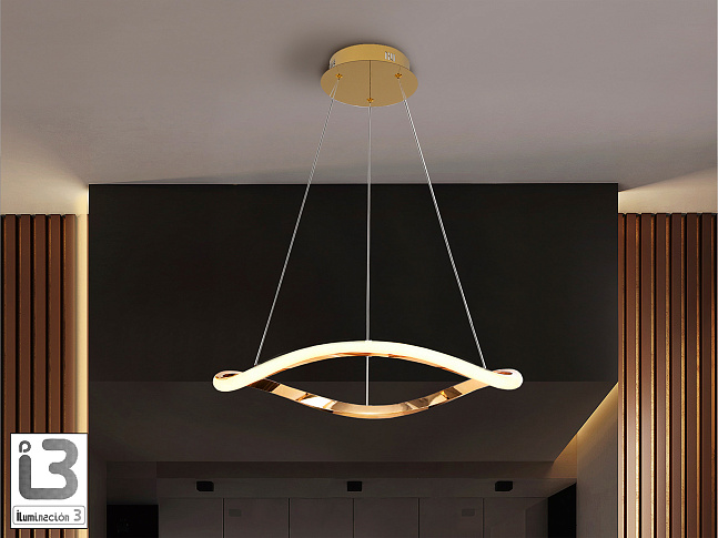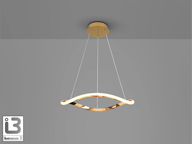 Лампа с одним изогнутым кольцом. Изготовлена из металла и алюминия. Отделка розовым золотом. Опаловый силиконовый рассеиватель. Регулируемая высота. 27 Вт LED, 1600 л, 3000 К