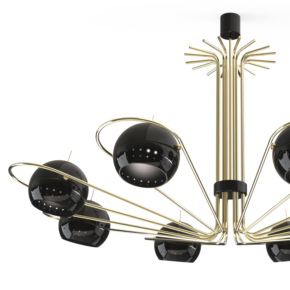 Люстра Neil от португальского бренда Delightfull отличается оригинальным дизайном, основным элементом которого являются медные арки и закрепленные в них круглые плафоны из алюминия. Ретро-стиль, в котором выполнена люстра Neil, напоминает нам о 60-х годах прошлого века – золотом времени покорителей космического пространства. Конструкция и технические устройство люстры позволяют регулировать угол наклона плафонов, а также включать лишь половину из них. Люстра Neil, как и все другие люстры и светильники Delightfull, собирается вручную из материалов и комплектующих самого высокого качества.