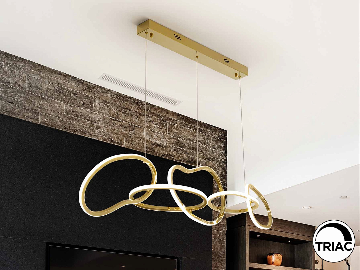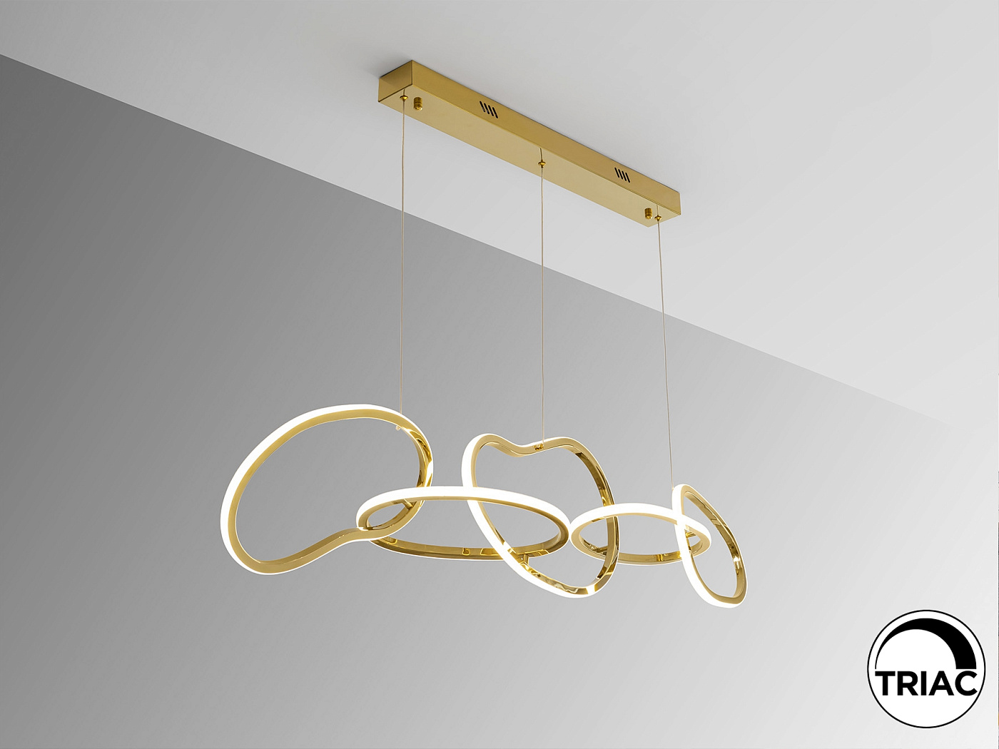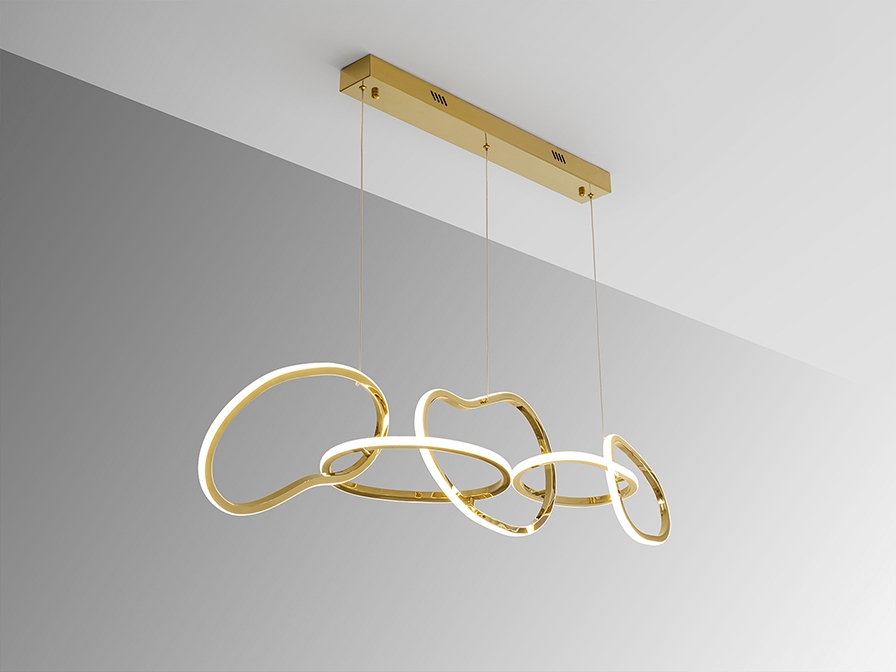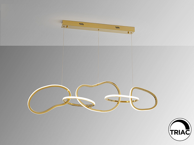 Светильник из нержавеющей стали с покрытием из яркого золота. Рассеиватель из опалового силикона. Регулируемая высота. Светодиод 75 Вт, 7100 лм, 3000 К. РЕГУЛИРУЕМАЯ ЯРКОСТЬ В этом продукте используется светодиодный драйвер с симисторным типом и регулировкой яркости 0-10 В. Яркость можно регулировать с помощью настенного светодиодного диммера с этими функциями. · Эта лампа поставляется с ГРАВИТАЦИОННЫМИ ПЕРЕКЛЮЧАТЕЛЯМИ для улучшения фиксации на потолке.