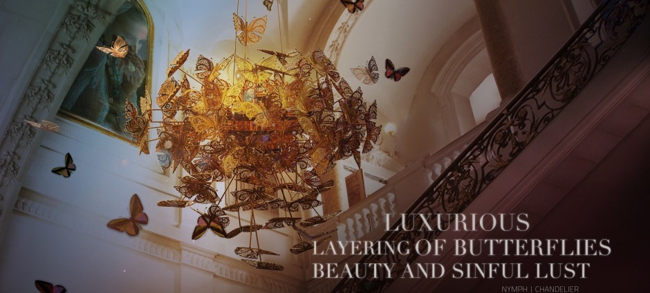 Люстра Nymph от бренда Koket представляет собой невероятное зрелище. Рой металлических бабочек, прикрепленных к центру люстры тонкими стержнями, создают иллюзию абажура. Их украшенные замысловатой резьбой крылья пропускают сквозь себя лучи света и наполняют помещение причудливой игрой бликов и теней. Эта дизайнерская люстра изготовлена из латуни и доступна в трех вариантах отделки: бронза, золото или серебро. Люстра Nymph, как и все предметы, впускаемые под брендом Koket, изготавливается вручную. Купить дизайнерскую люстру Nymph в любой из доступных отделок Вы можете на нашем сайте.